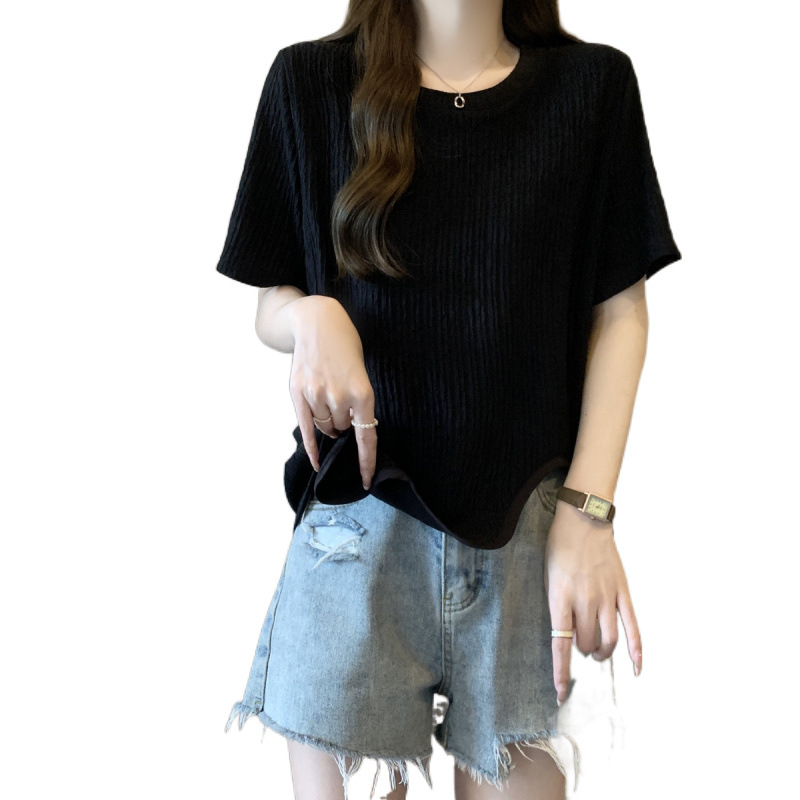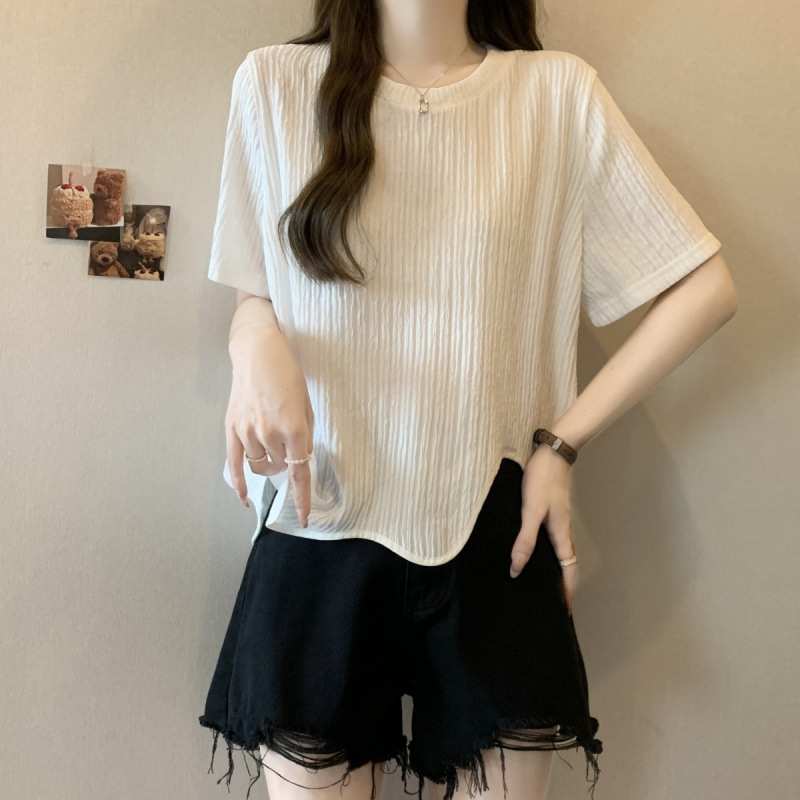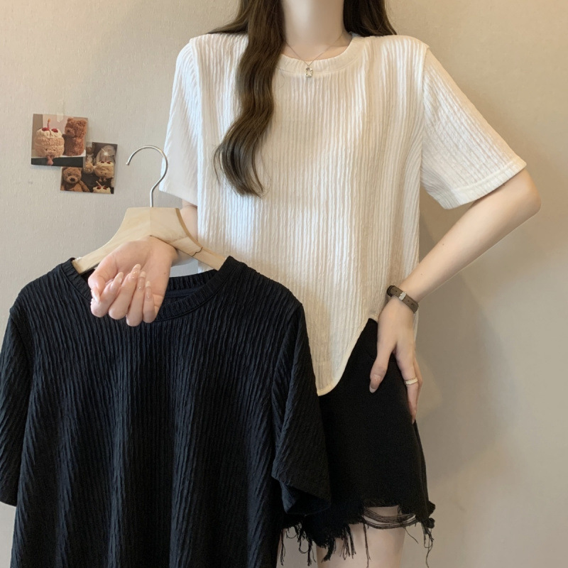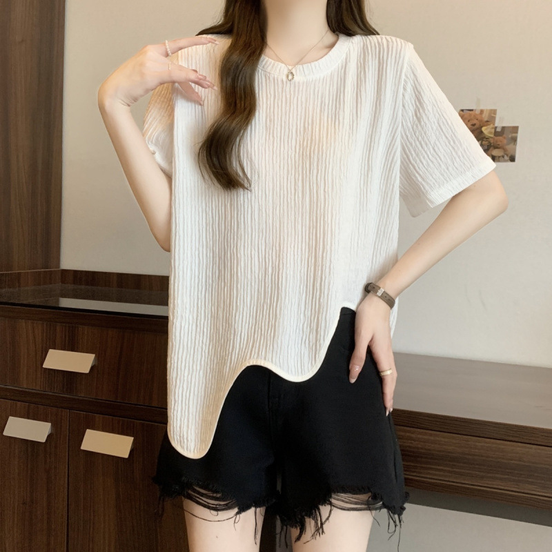 韩系减龄不规则短袖T恤2025夏季女装新款大码遮肚显瘦时尚上衣女