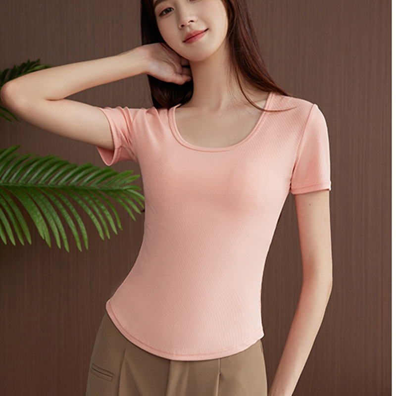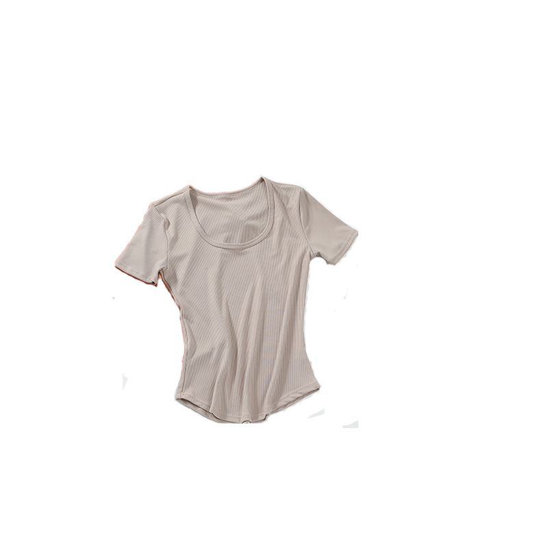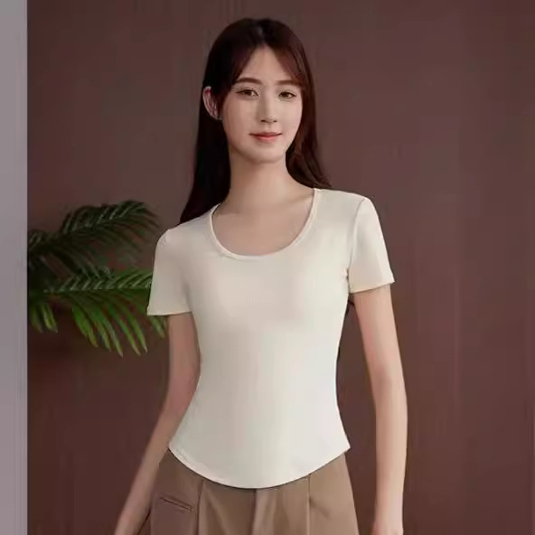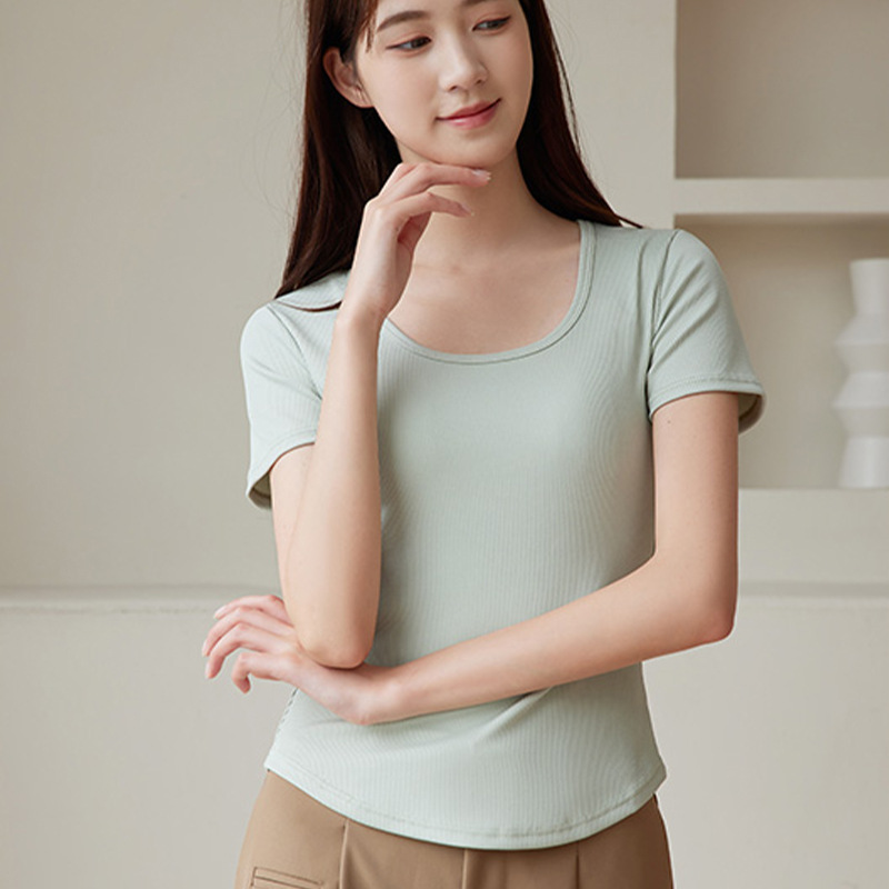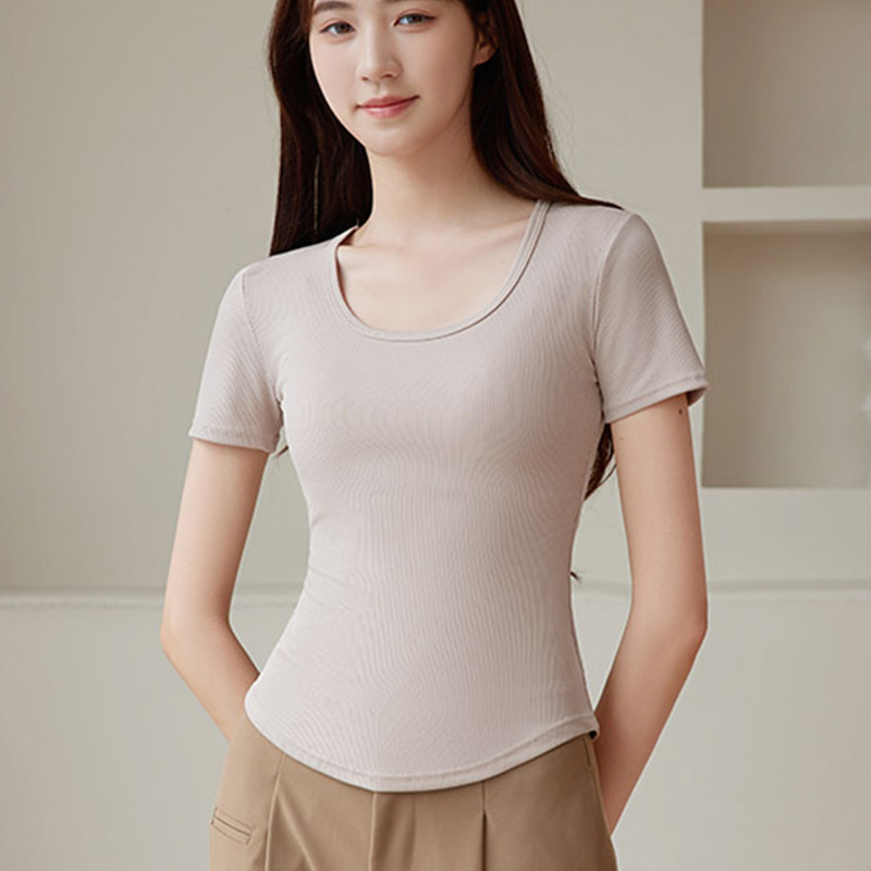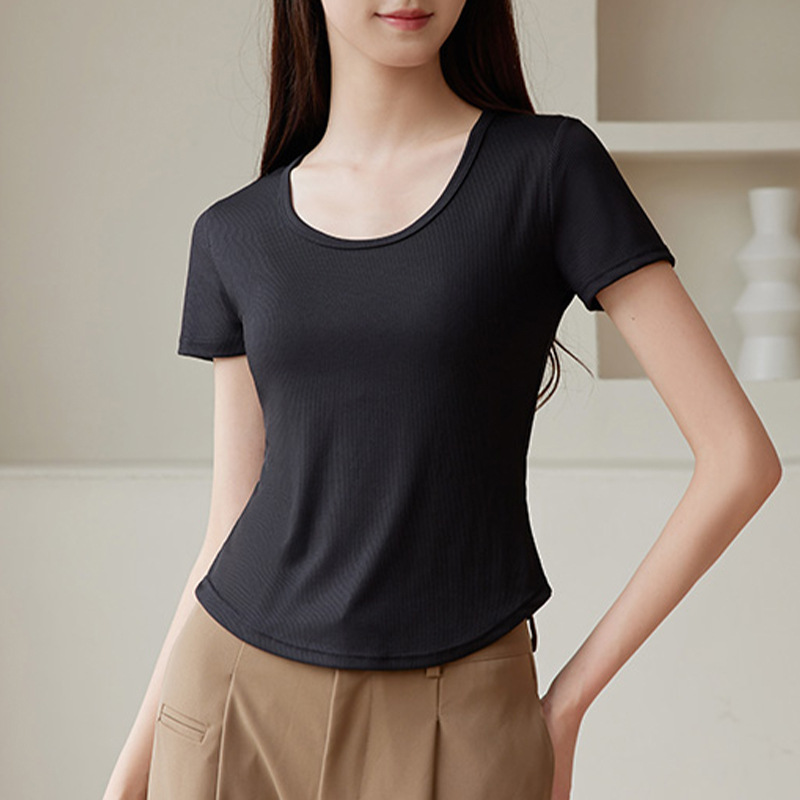 基础性价比欧洲小众文化时髦百搭短袖性感露锁骨U领下摆短袖T恤女