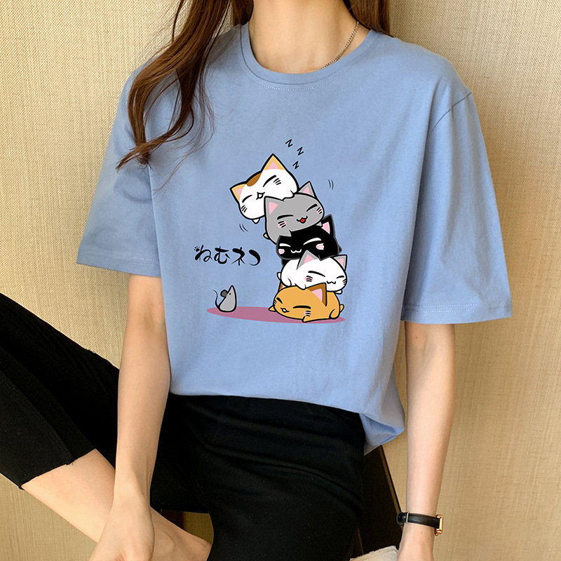 纯棉原宿风短袖t恤女新款夏季宽松卡通印花半袖体恤衫上衣服