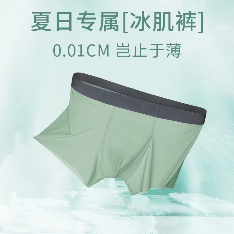 春夏新款无痕冰丝男士内裤超薄速干透气棉质裆纯色四角裤舒适薄款