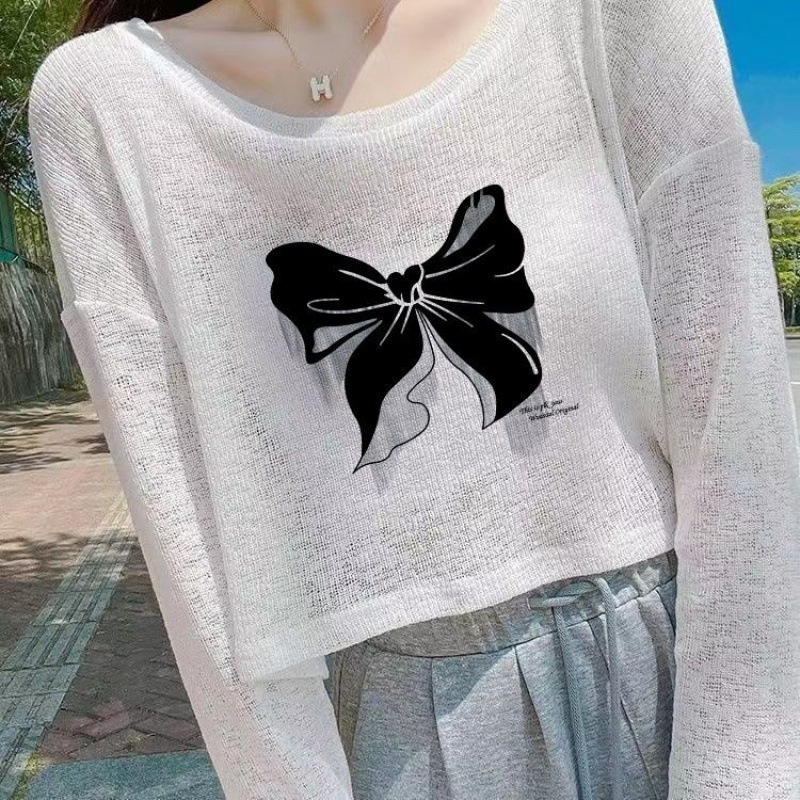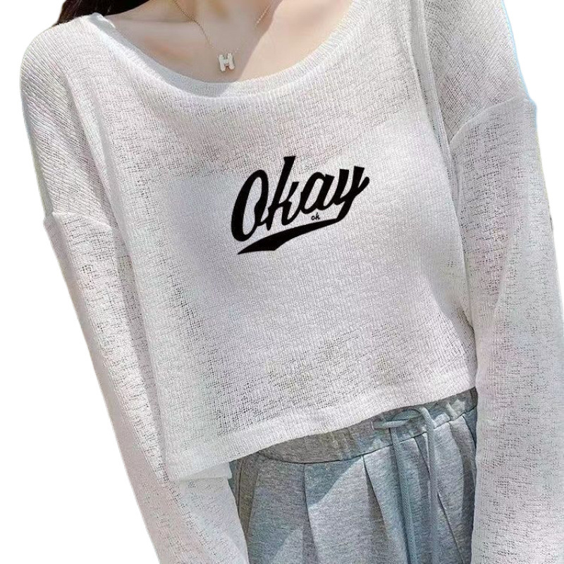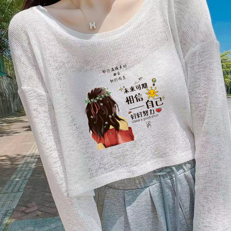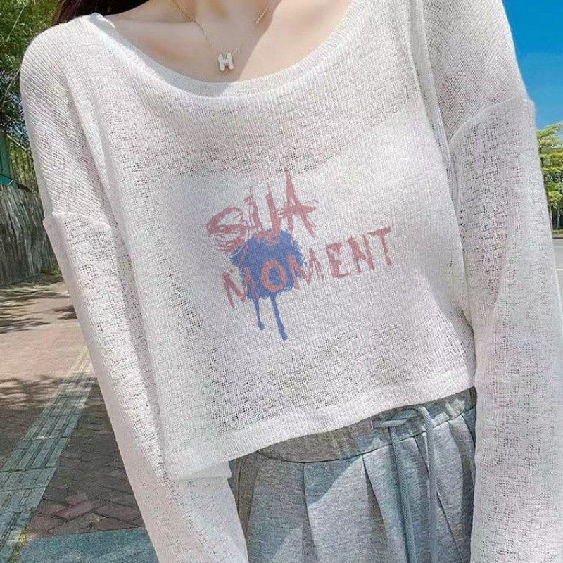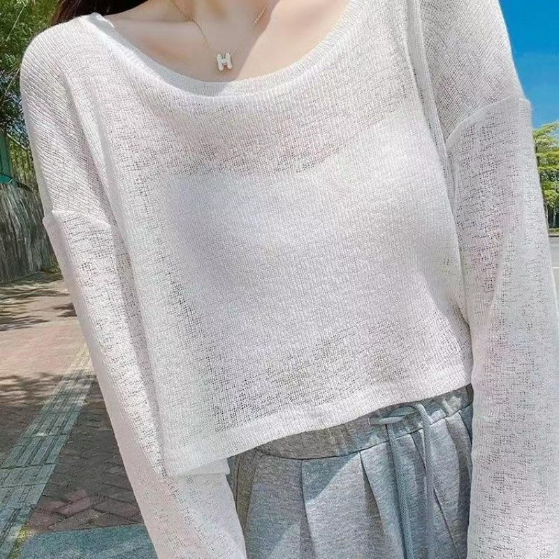夏季T恤白色短款吊带外搭上衣薄款罩衫宽松微透女夏季长袖防晒