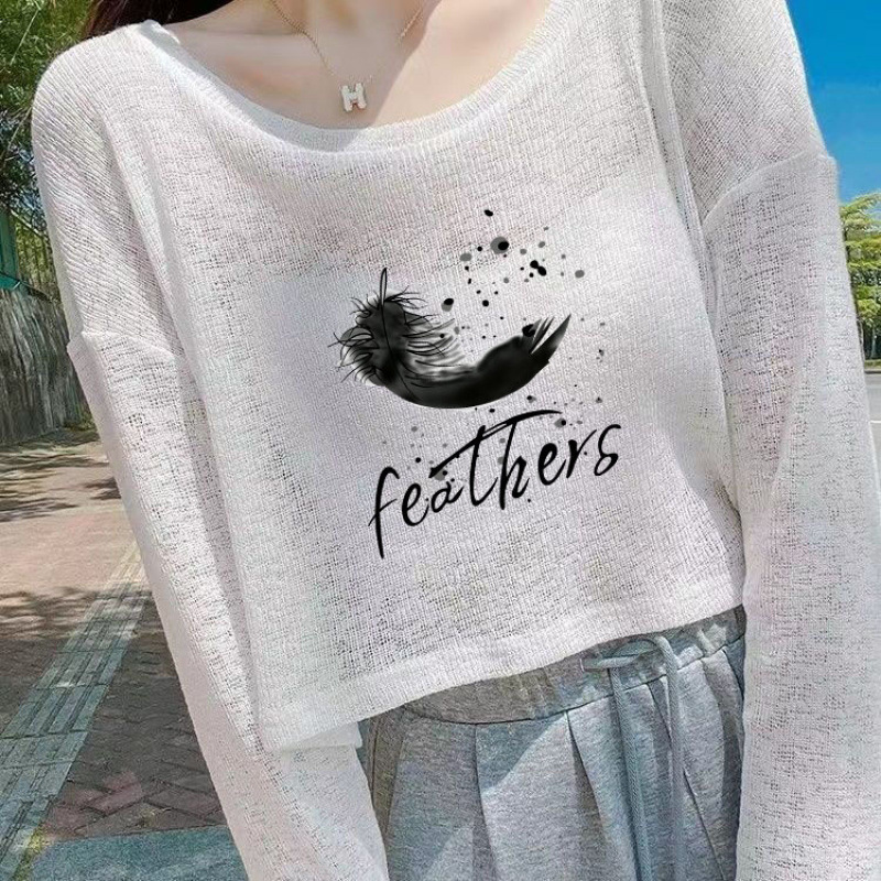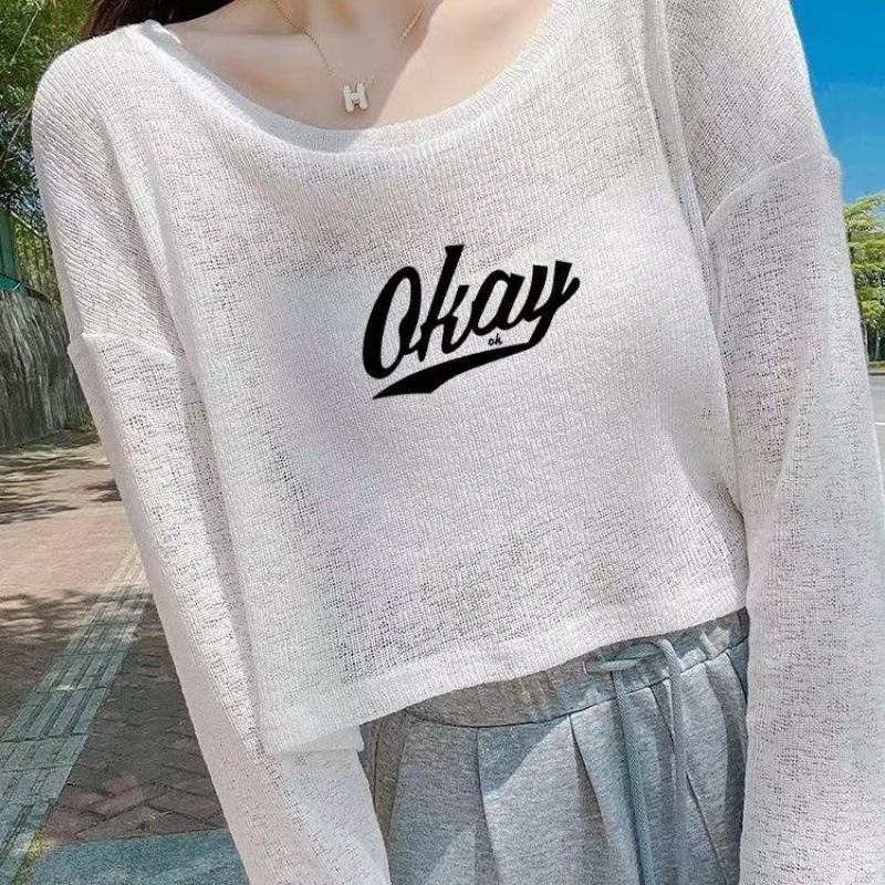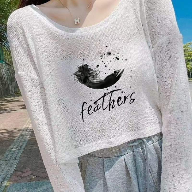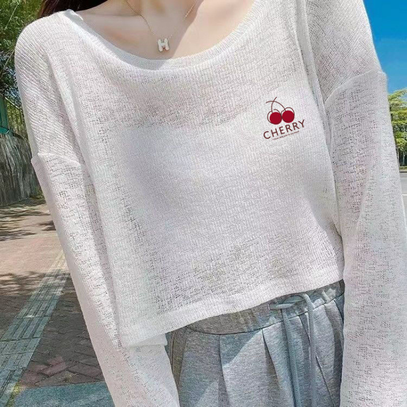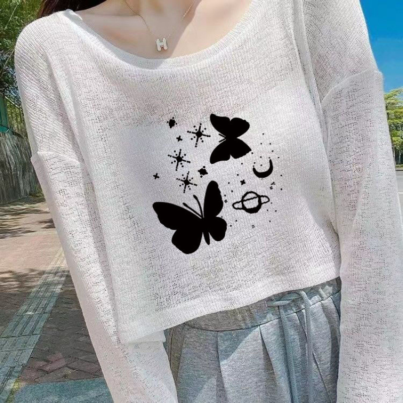 夏季T恤白色短款吊带外搭上衣薄款罩衫宽松微透女夏季长袖防晒