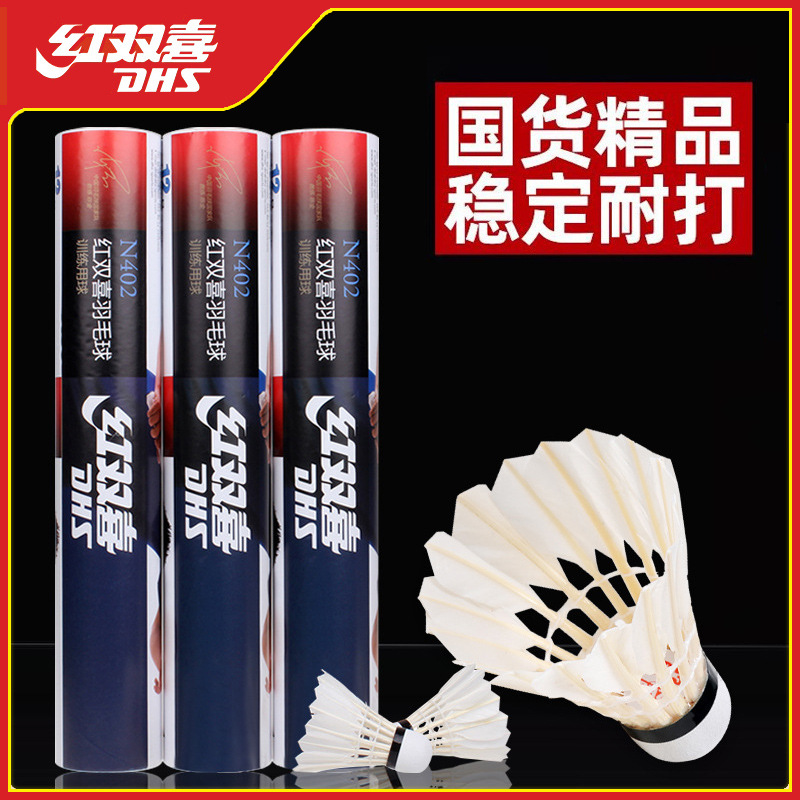 红双喜羽毛球耐打王一桶训练比赛402 402A软木球头不易烂