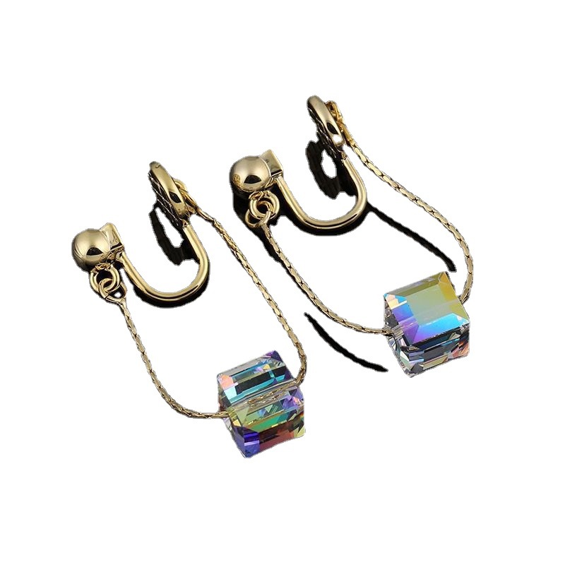 「小方糖」圆脸小众耳饰耳坠施家水晶蚊香盘耳夹无耳洞女耳钉春夏