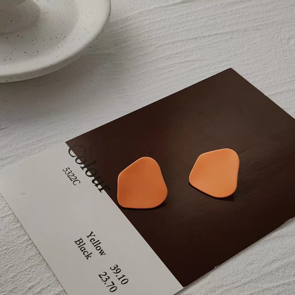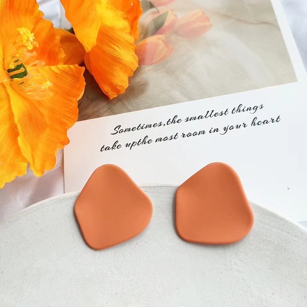 橘色耳环女气质橙色橙色耳饰复古不规则艺术感几何哑光磨砂耳钉