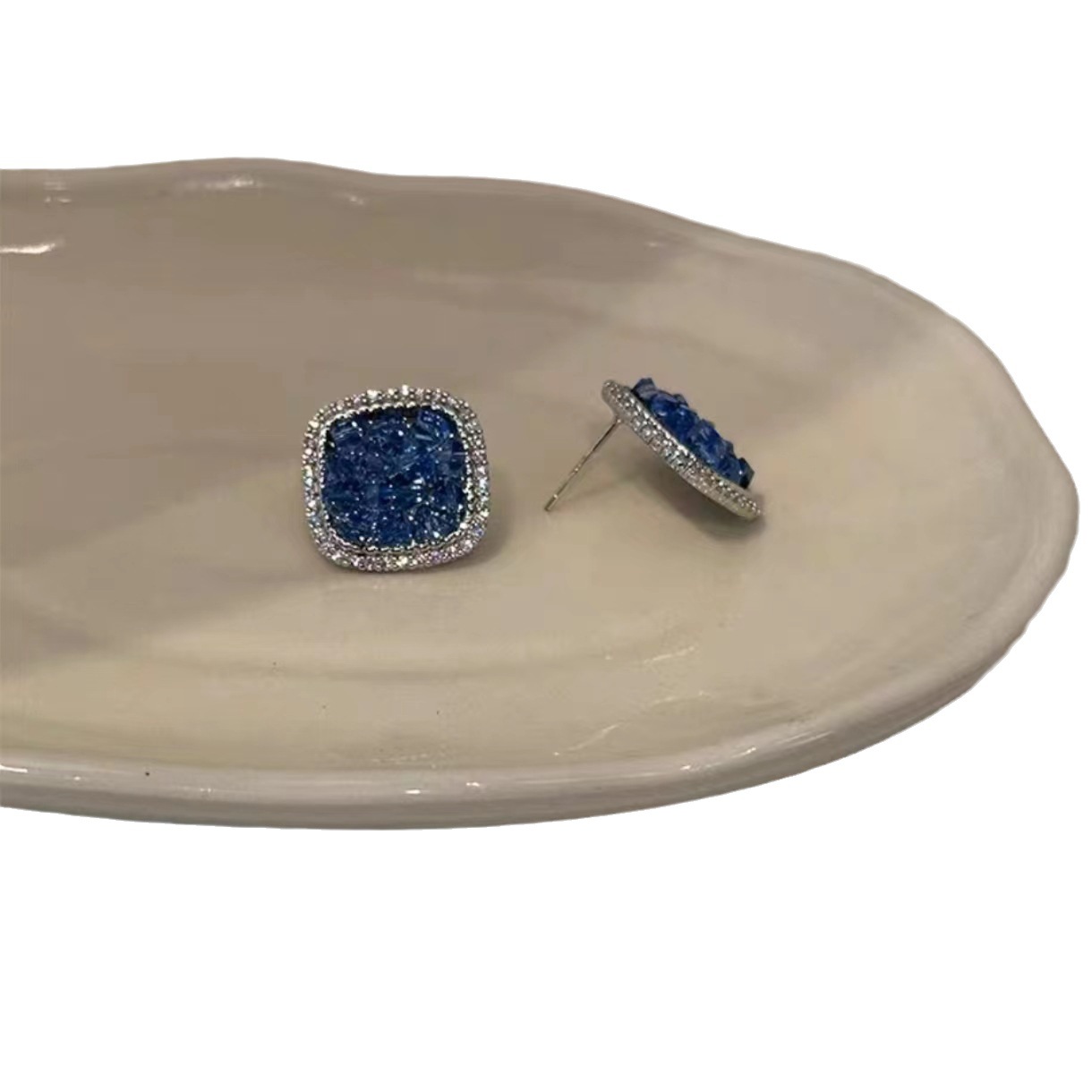 <蓝海盐>高贵气质小众高级感渐变蚊香盘耳夹无耳洞耳饰
