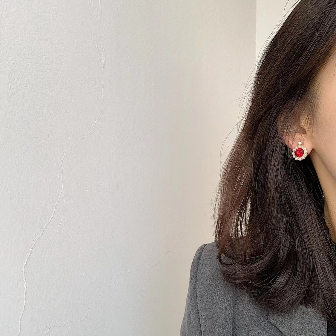 红磨坊的舞裙」红色复古赫本风耳饰蚊香盘耳夹无耳洞女神耳钉气质