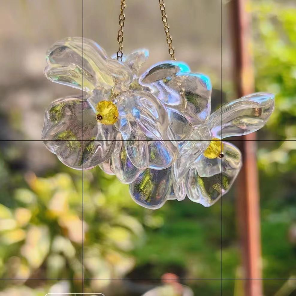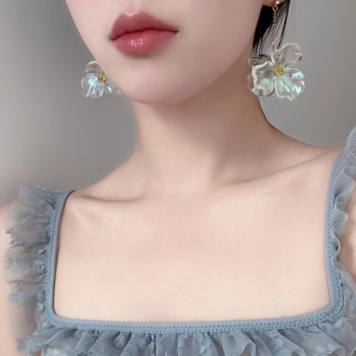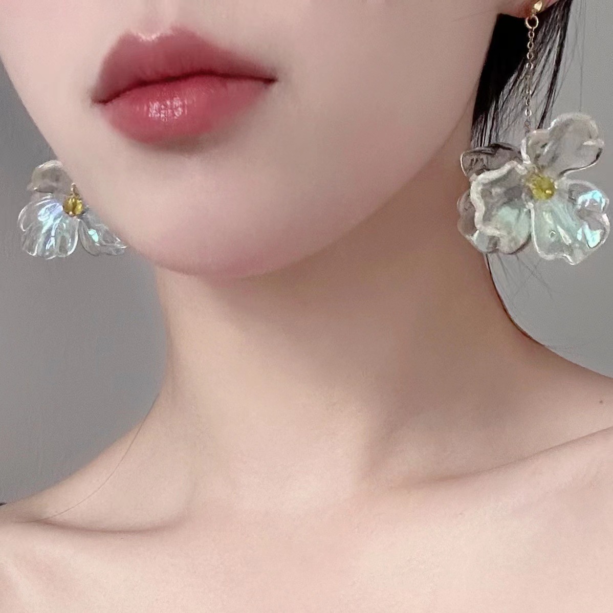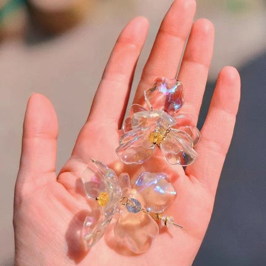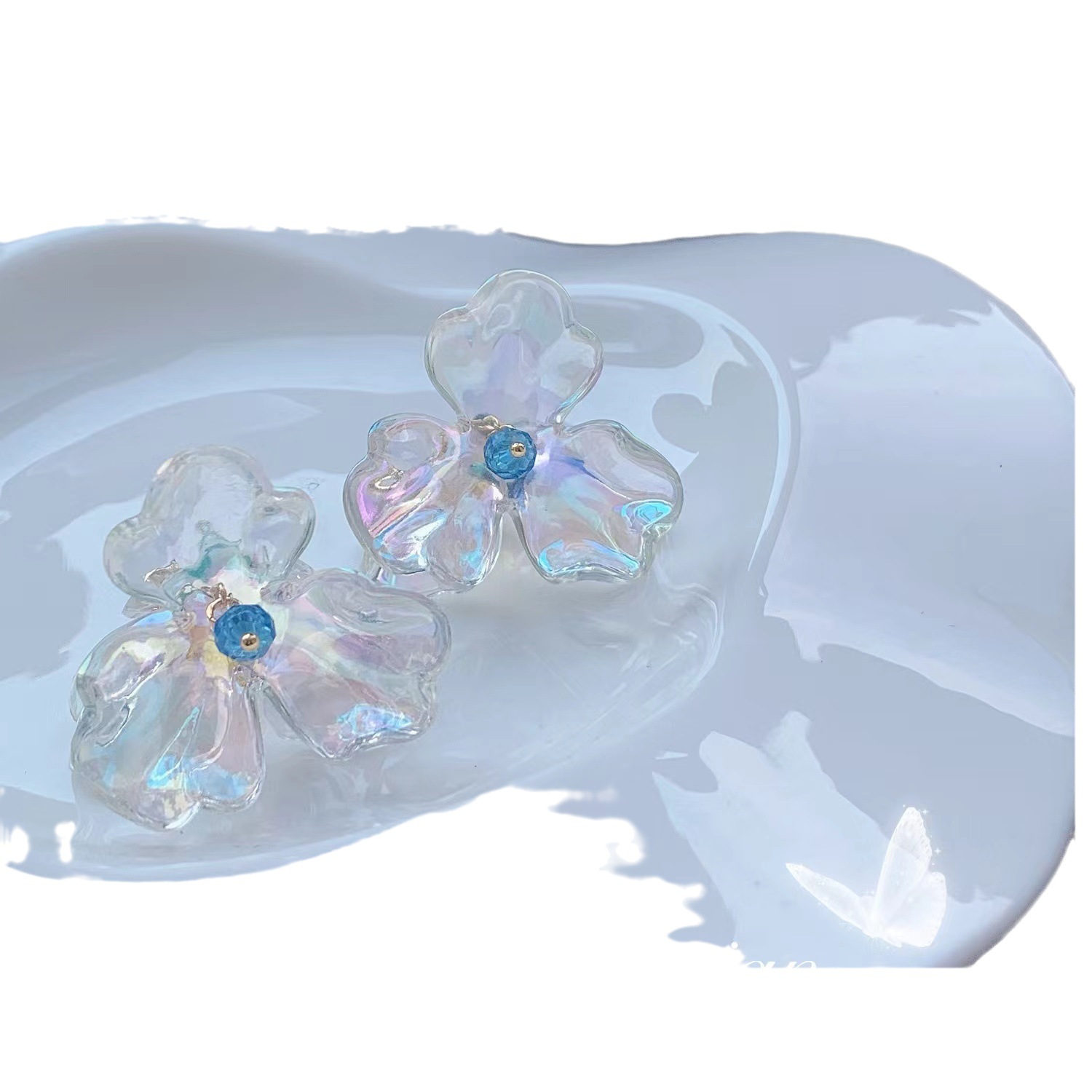 「花海梦境」不对称透明花朵无耳洞蚊香盘耳夹女夸张耳饰耳钉