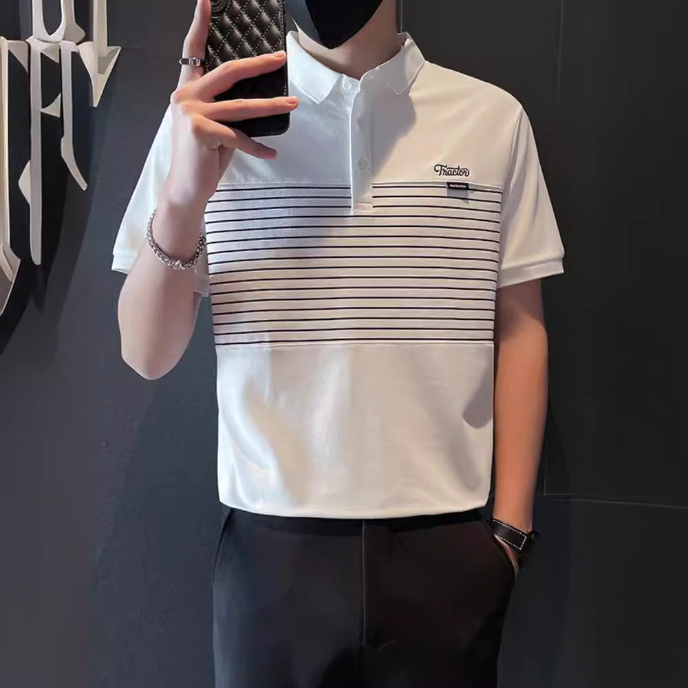 短袖男款polo衫潮牌夏季新款条纹拼接翻领t恤帅气百搭半截袖夏装