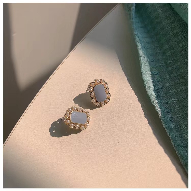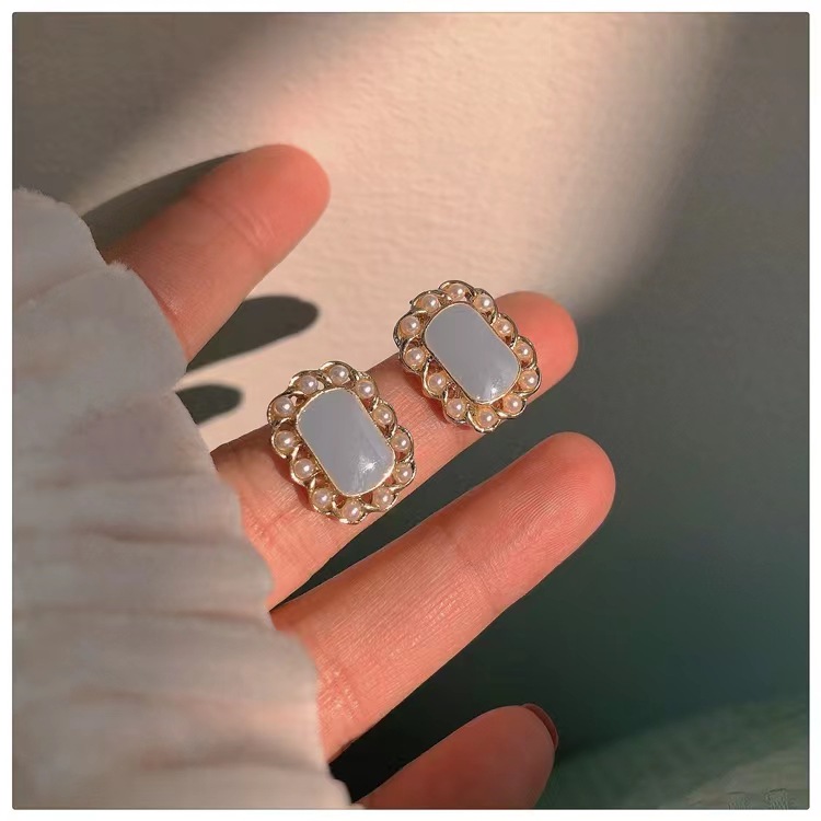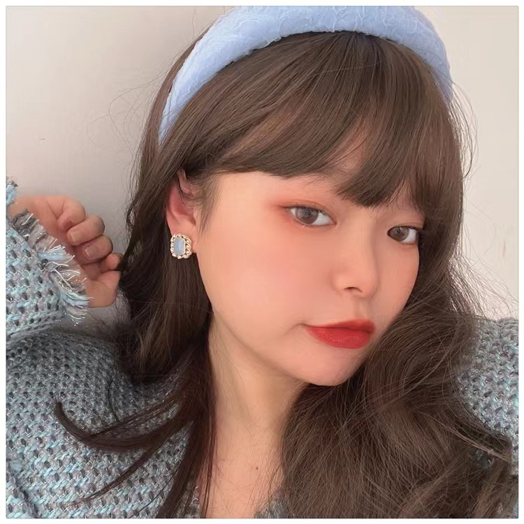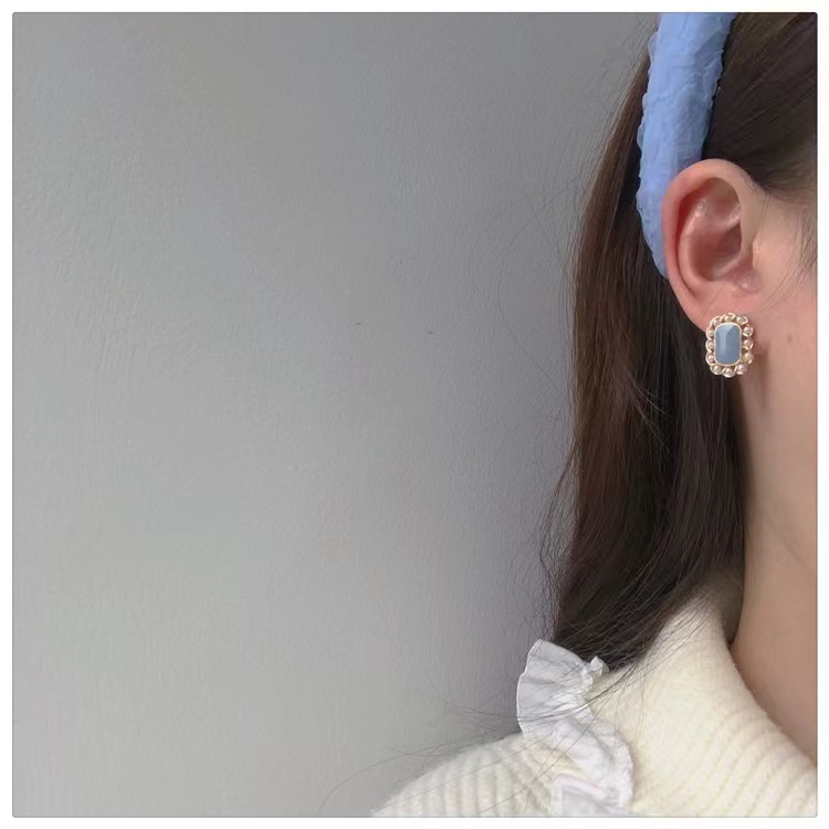 蓝色珍珠耳钉~甜美气质耳环少女法式初夏新款小清新耳夹潮