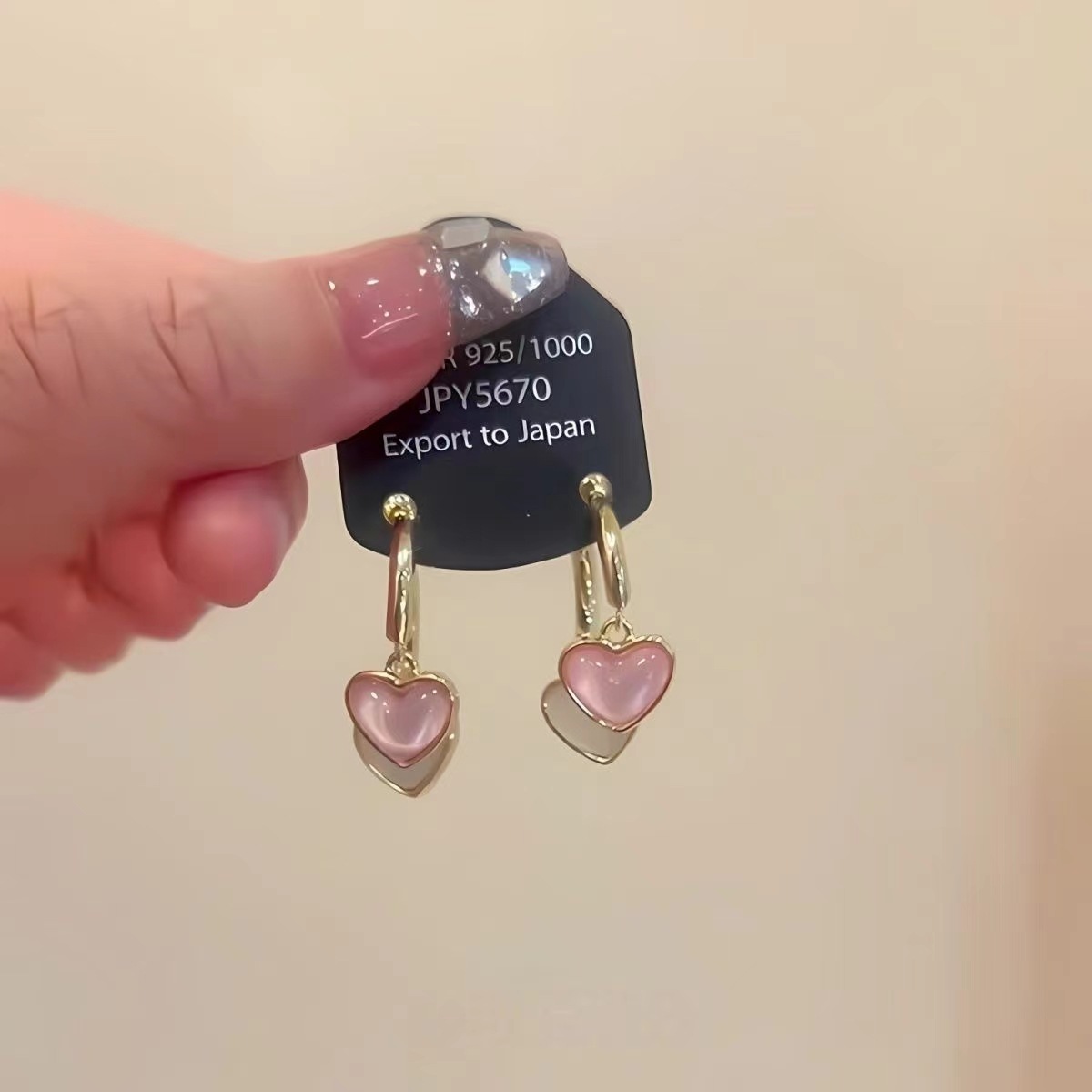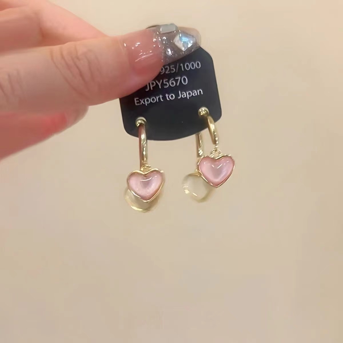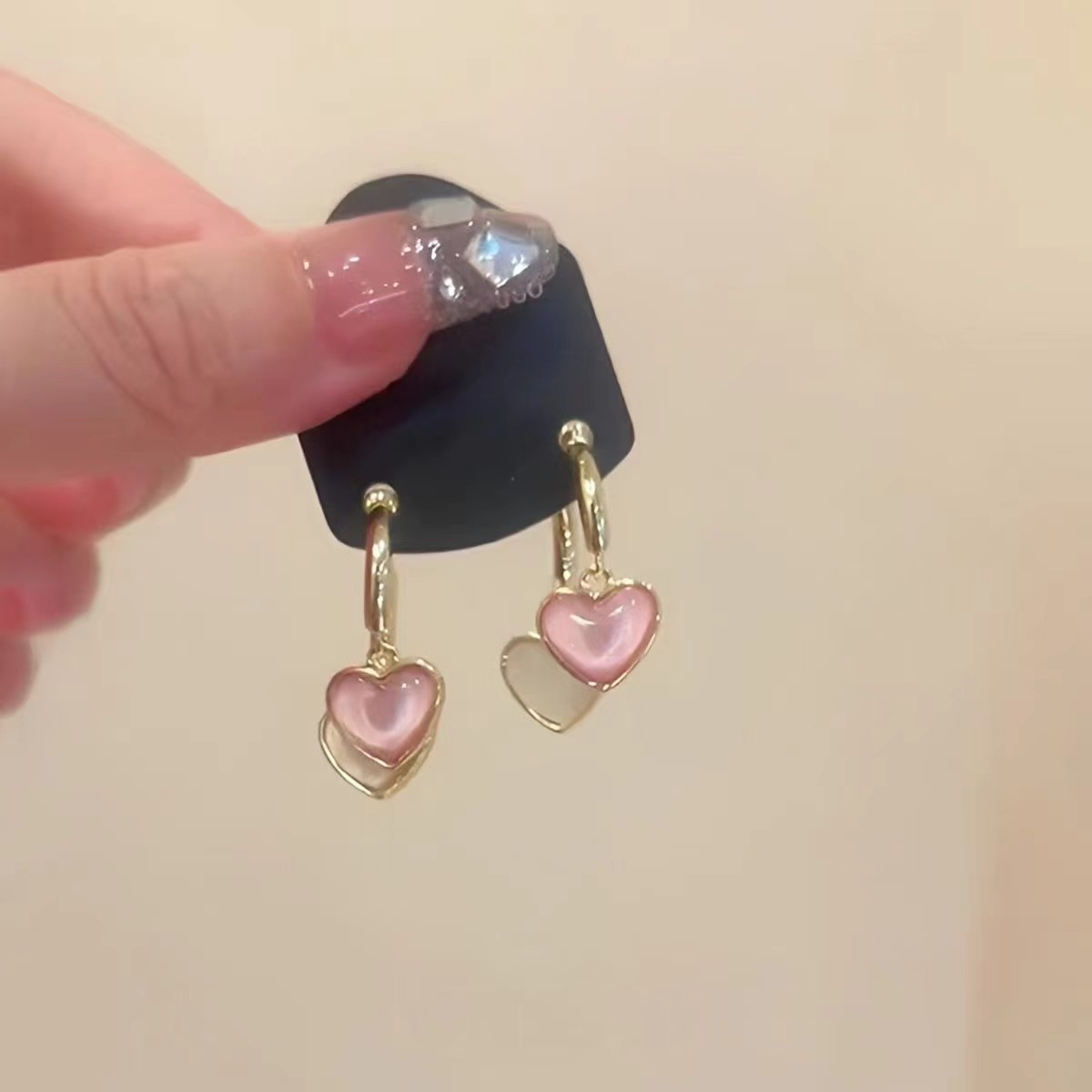 桃心奶泡」甜美风后挂式粉色爱心耳钉春夏新款气质小众耳饰无耳洞