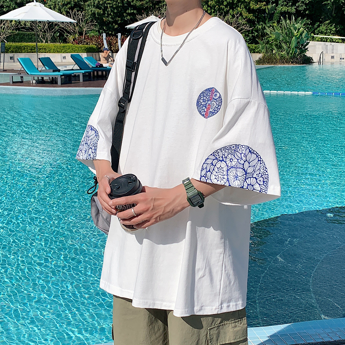 夏季新款男士T恤港风时尚潮流休闲情侣大码中国风短袖T恤男