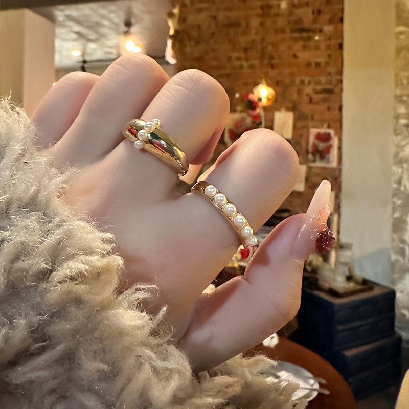 小众设计感冷淡风珍珠金属戒指法式复古简约气质百搭开口食指指环