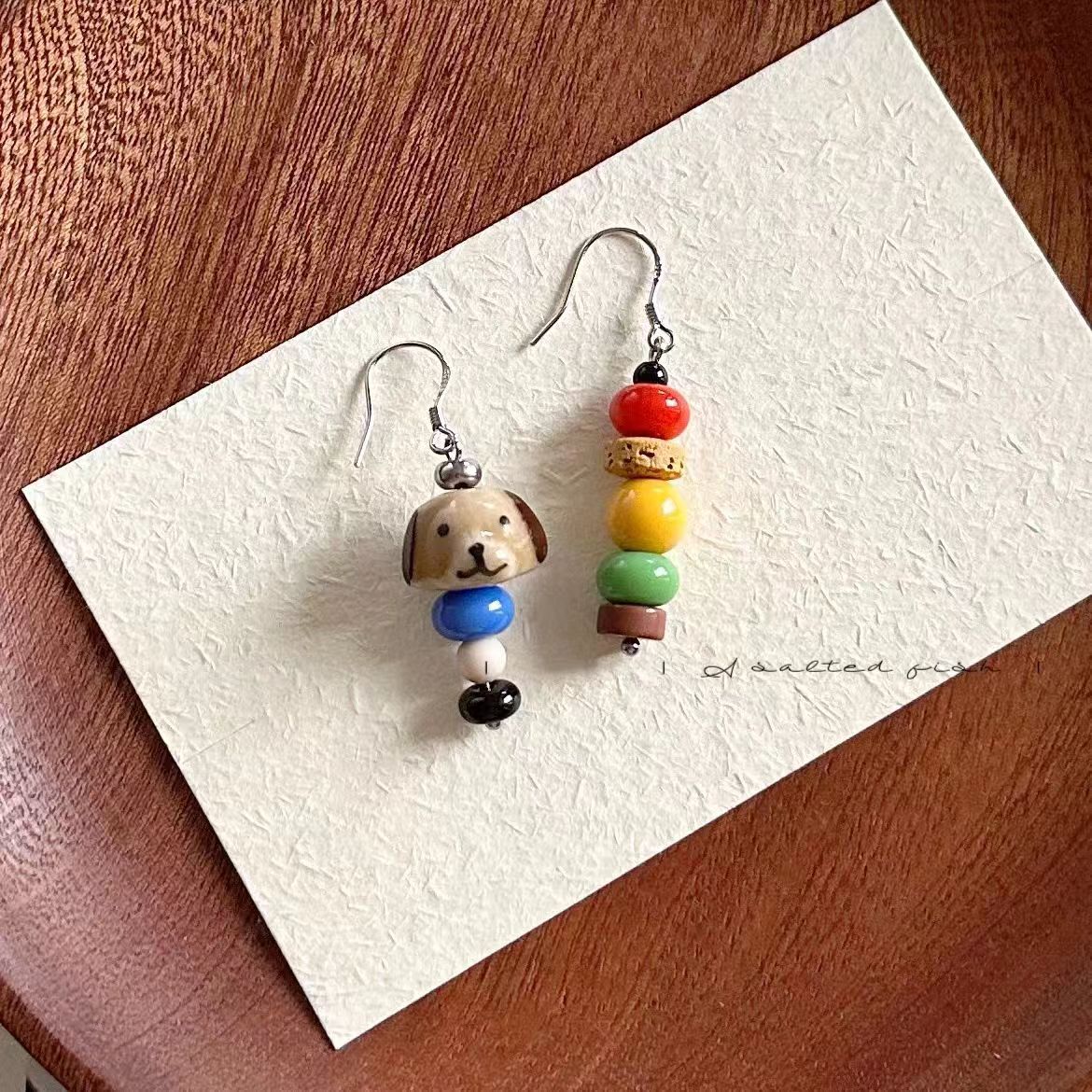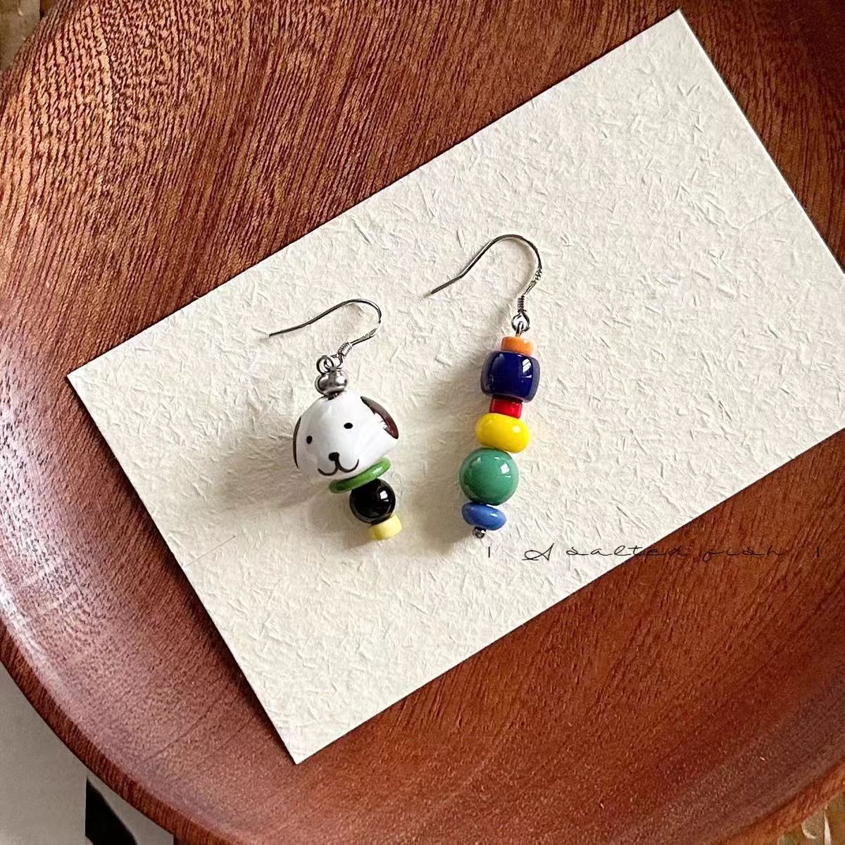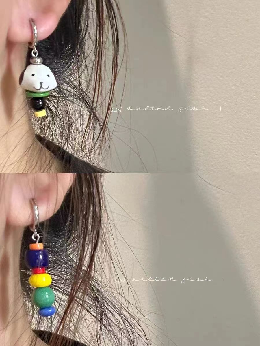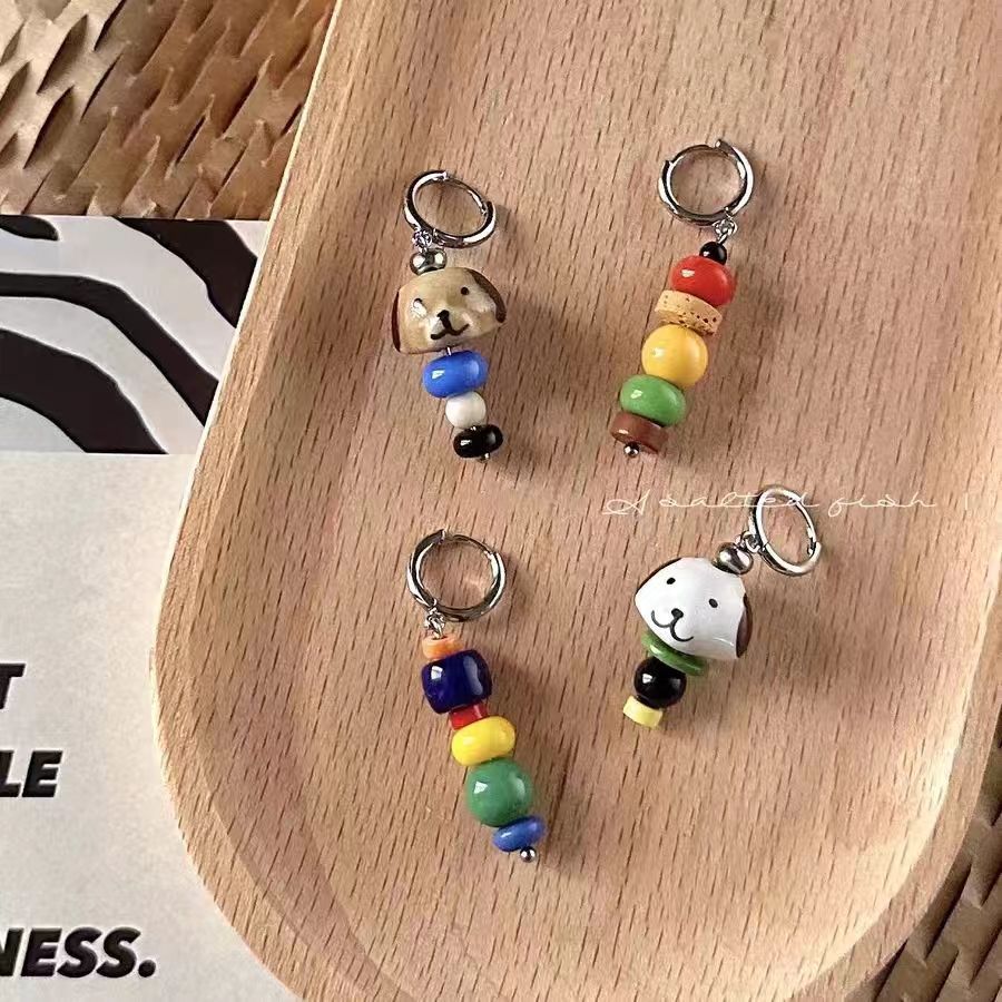 【快乐小狗】原创自制可爱彩色撞色陶瓷手工串珠耳环蚊香盘耳夹