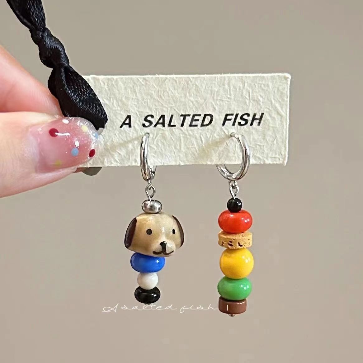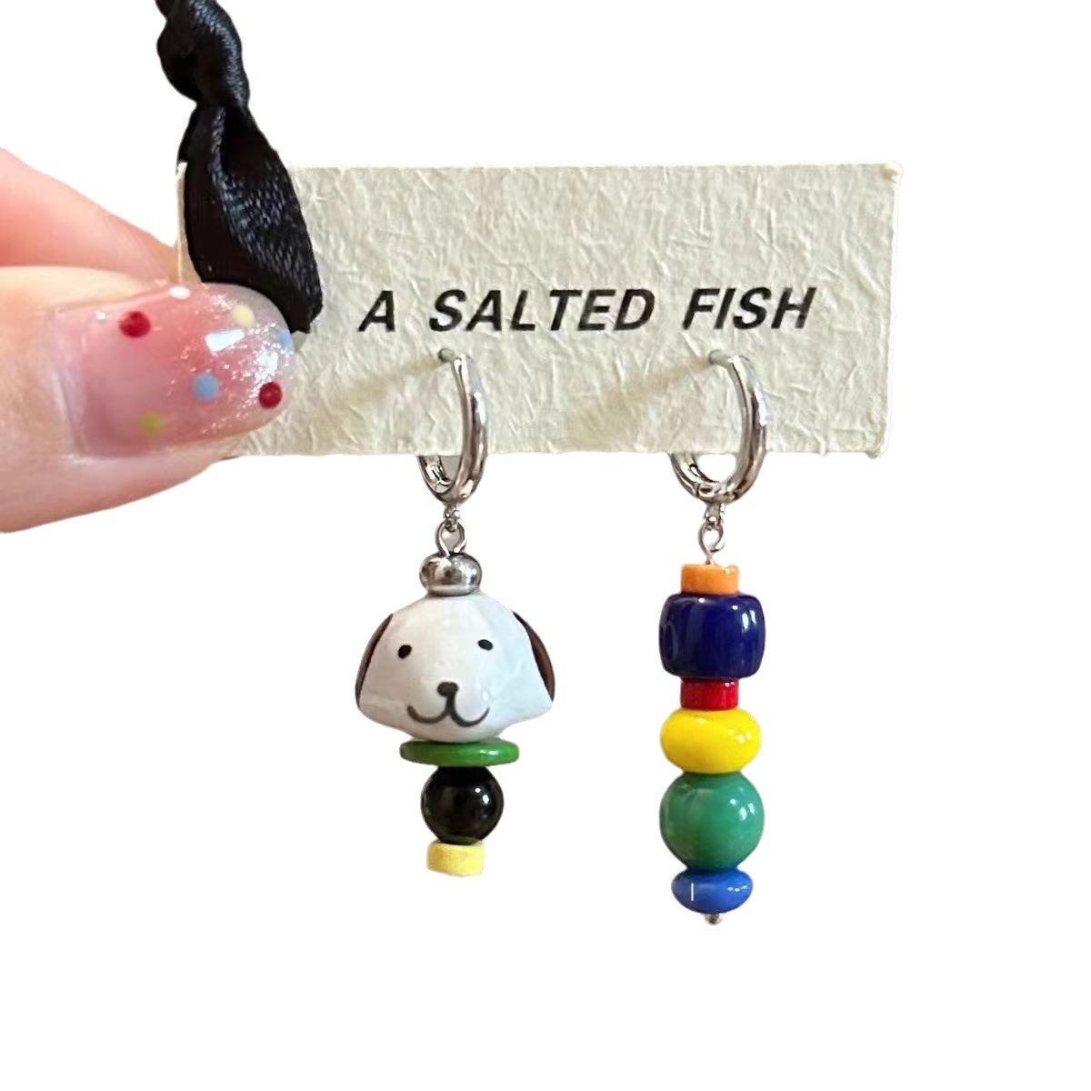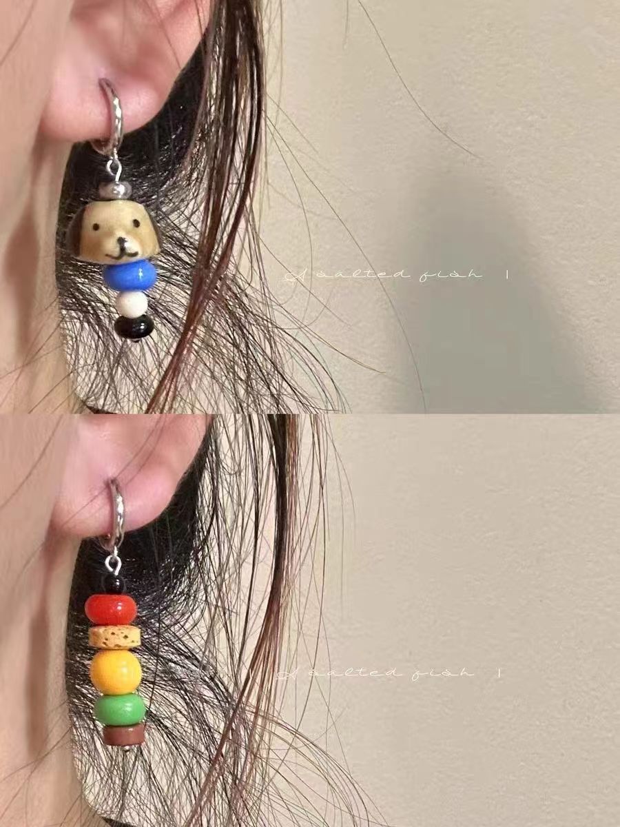 【快乐小狗】原创自制可爱彩色撞色陶瓷手工串珠耳环蚊香盘耳夹