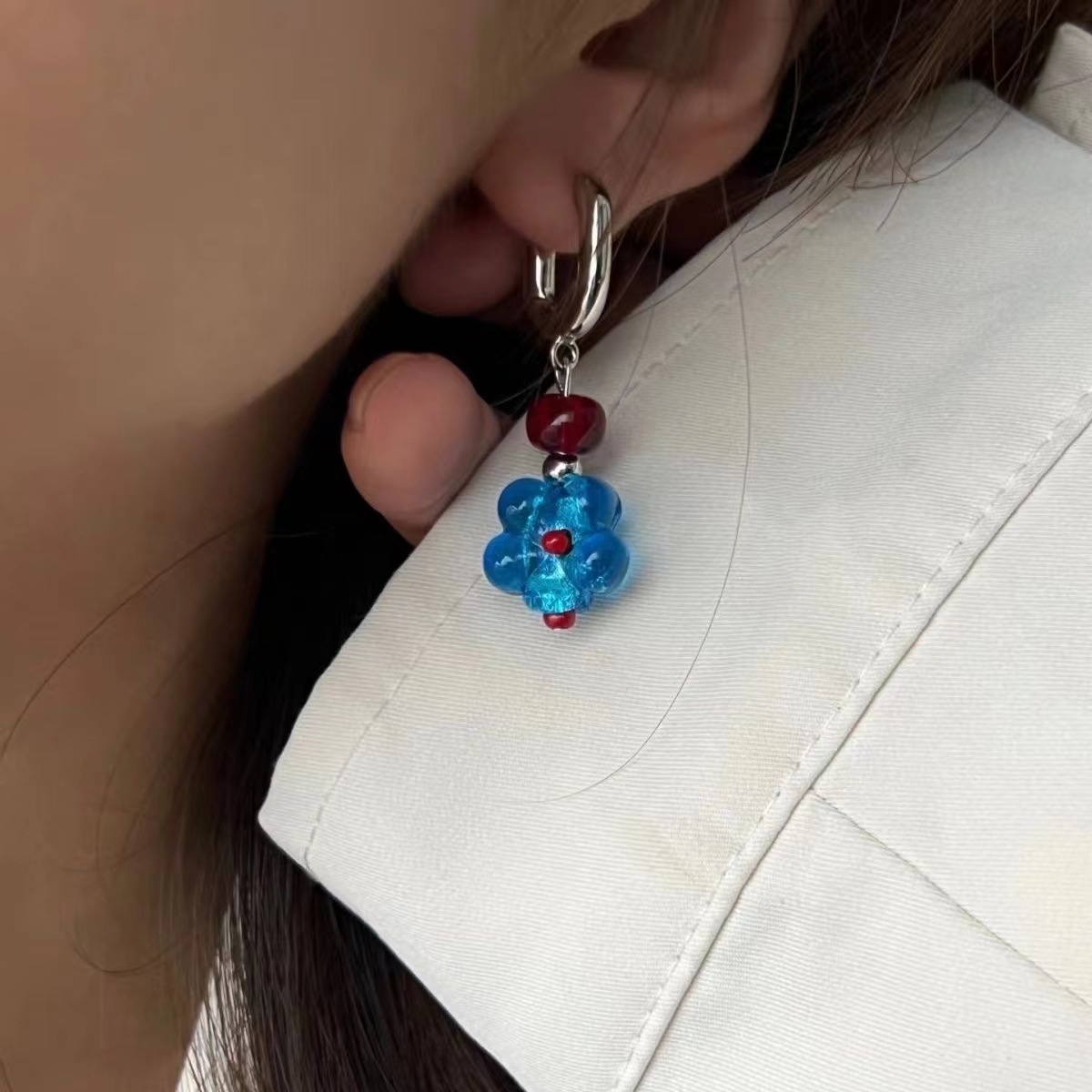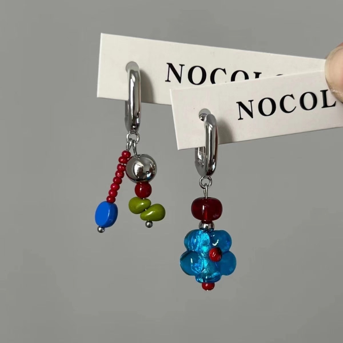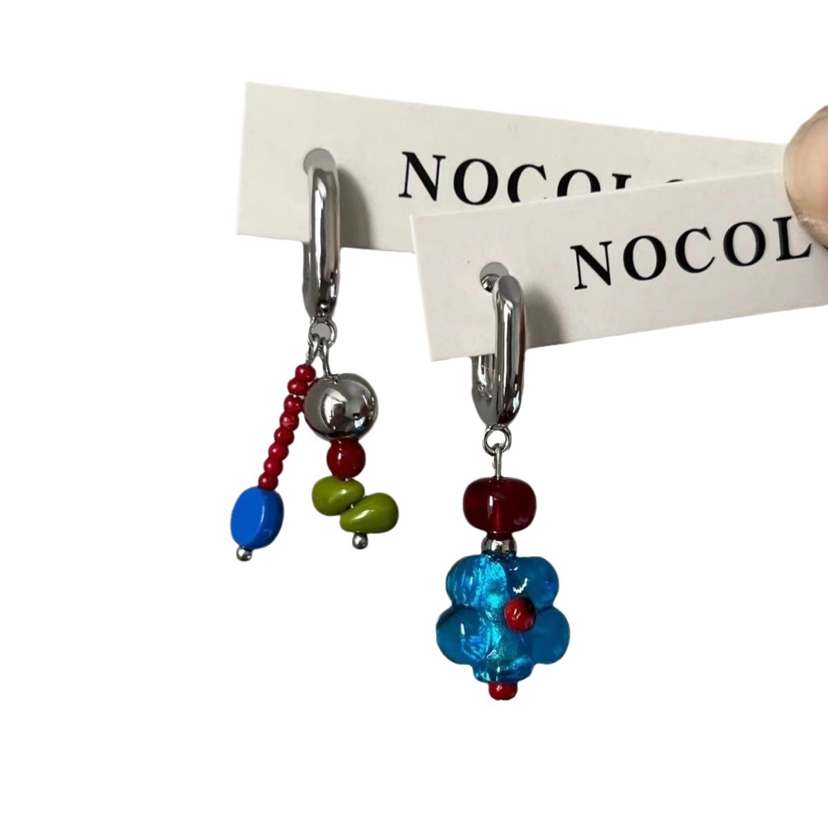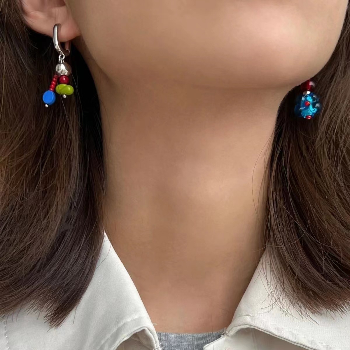 夏日新品小众耳环不对称设计玻璃碎花琉璃手作串珠百搭无耳洞耳夹