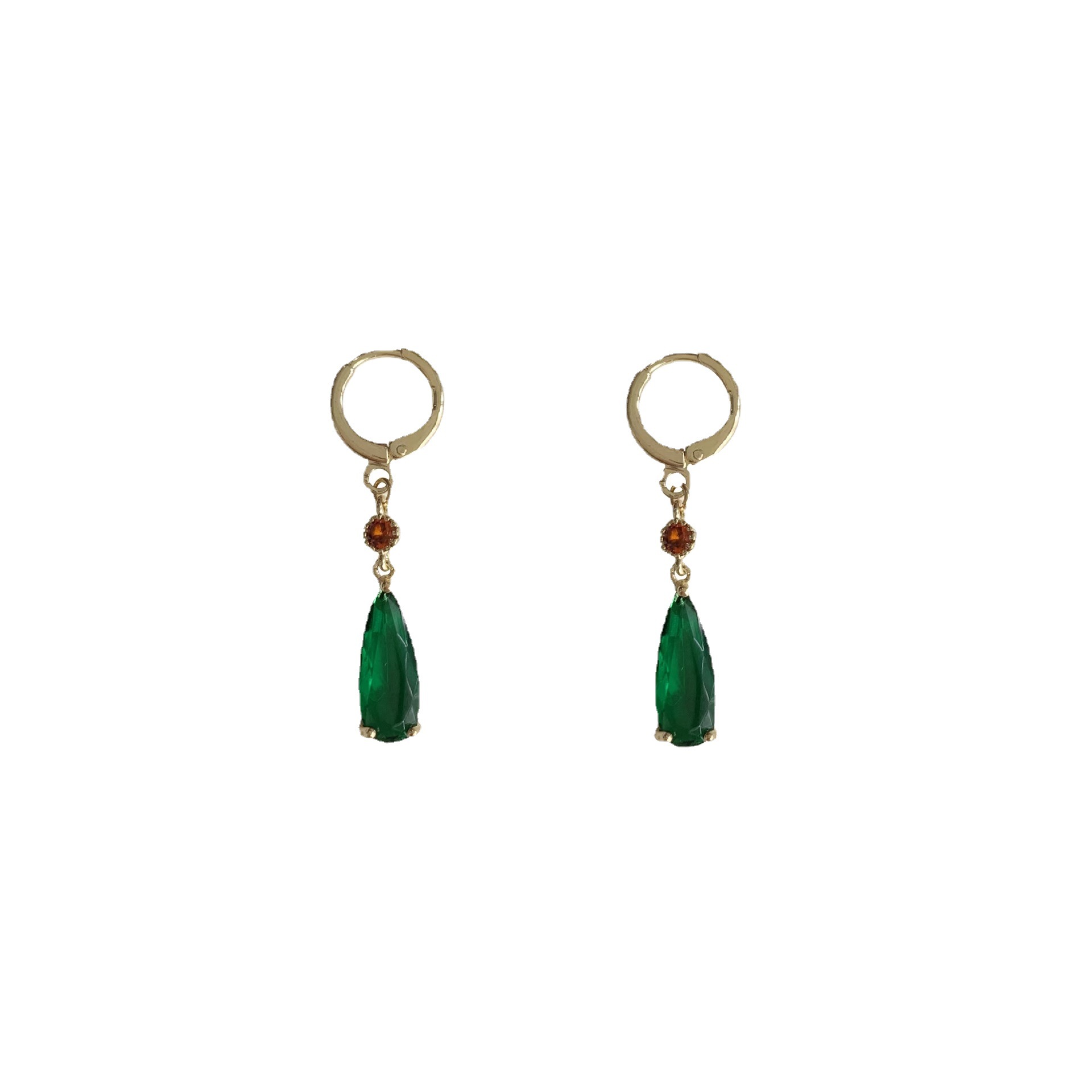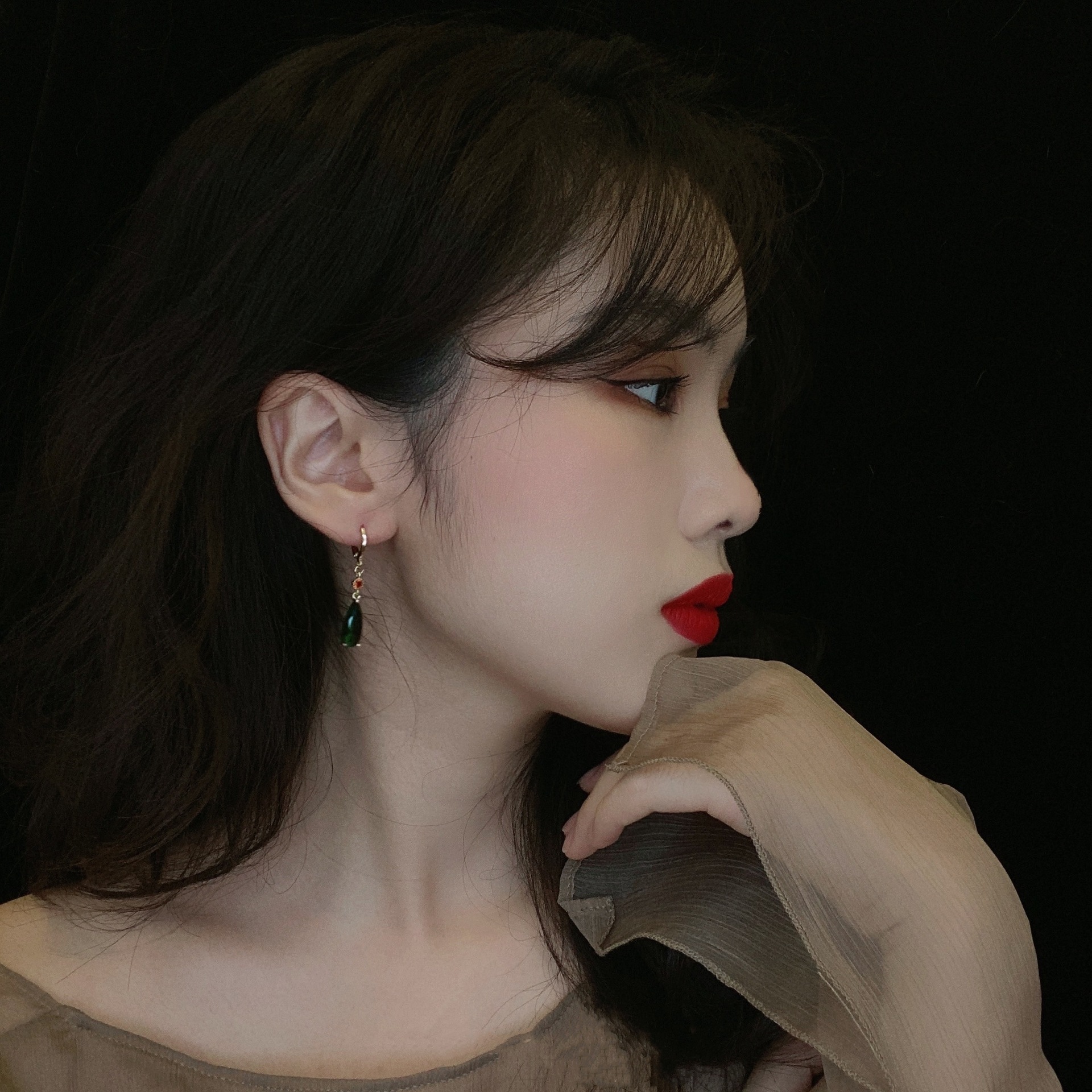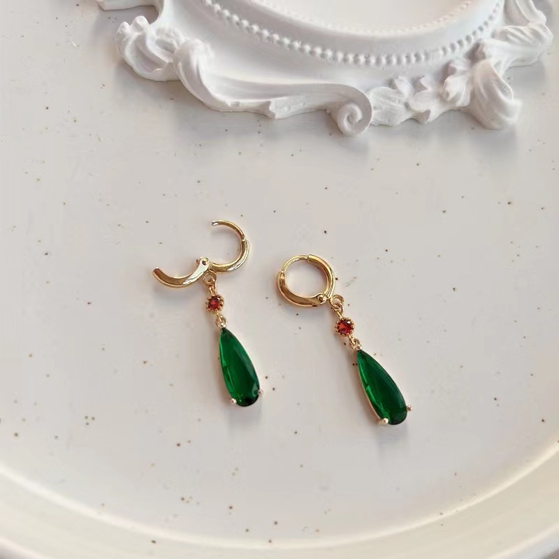 「哈尔的移动城堡」日系复古文艺气质祖母绿水滴耳环/耳夹夏天