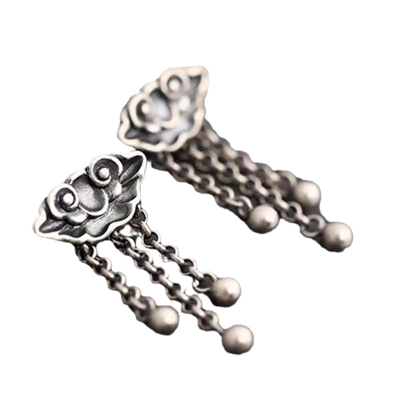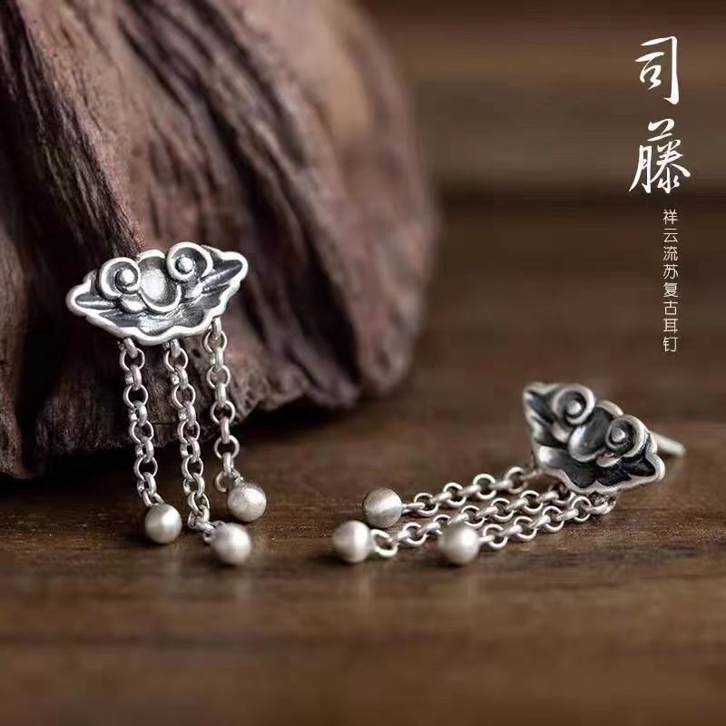 浣溪沙 司藤同款925银针流苏耳钉复古耳环耳饰气质中式文艺祥云