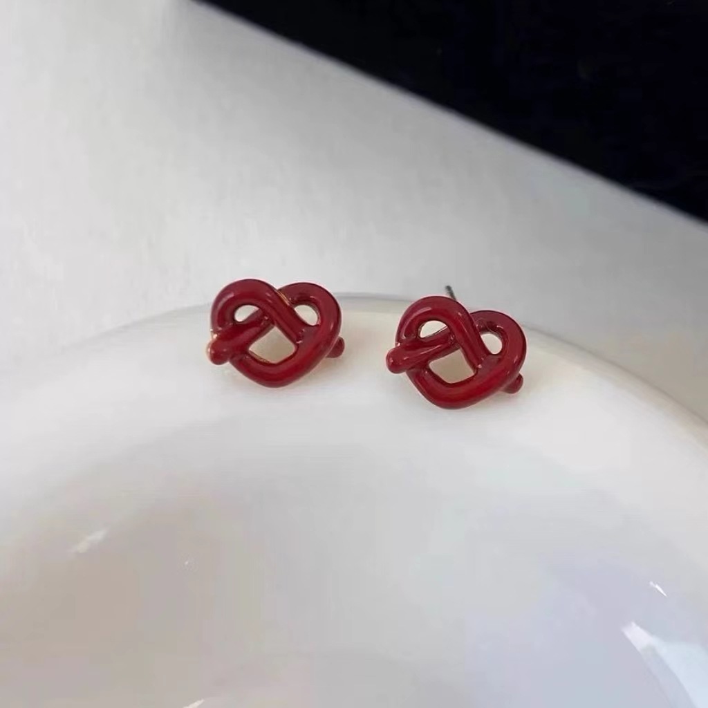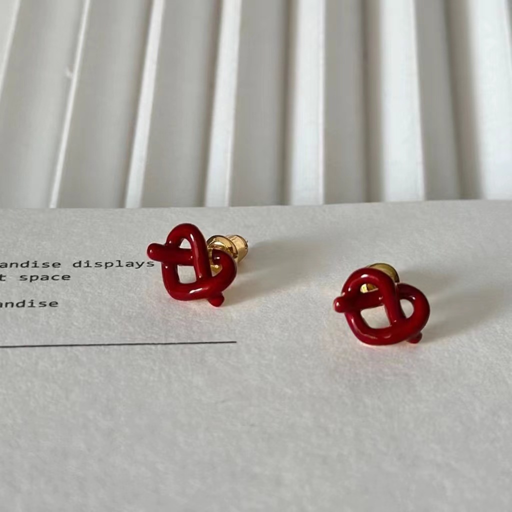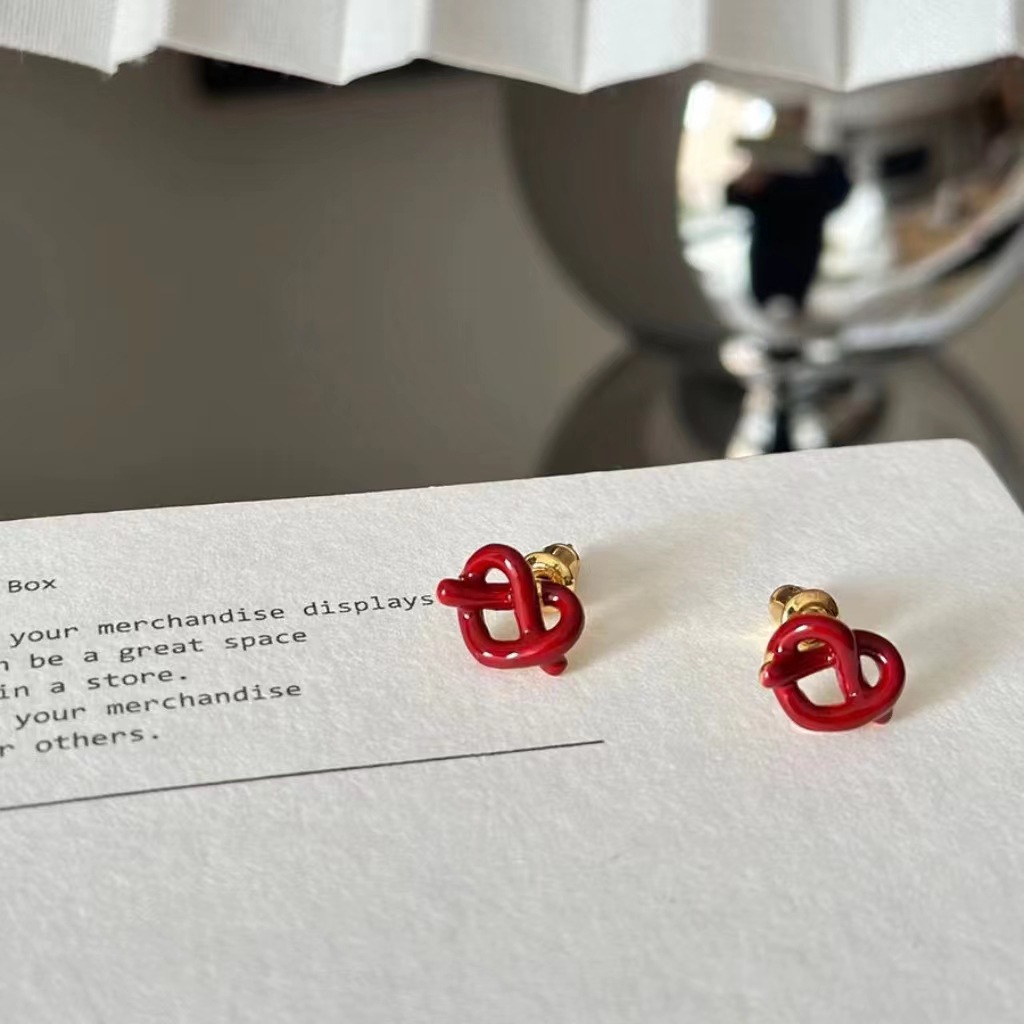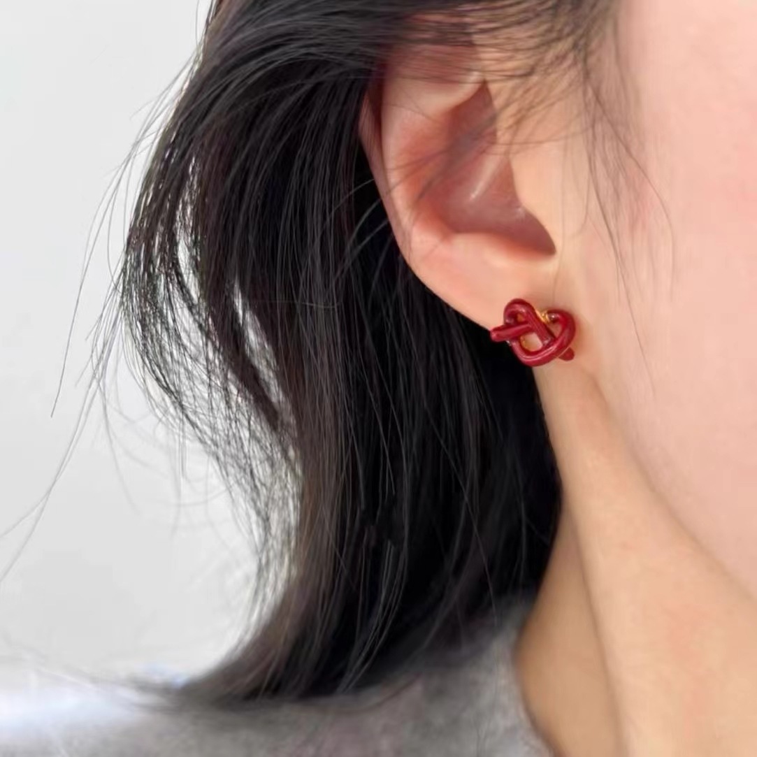奶酪cheese 英国设计师同款 红色面包爱心Mini打结耳环精致耳饰女