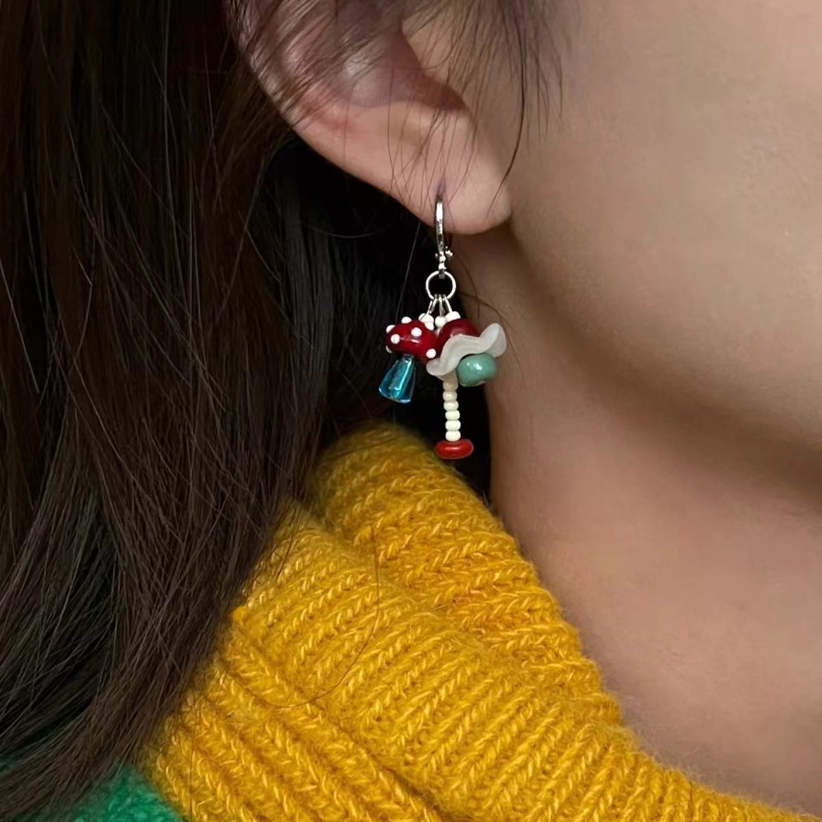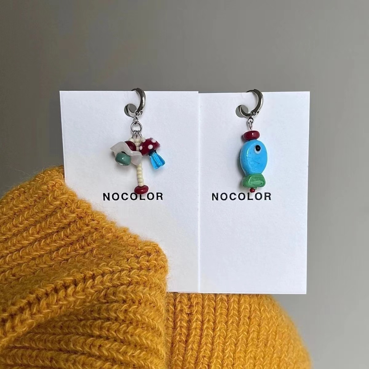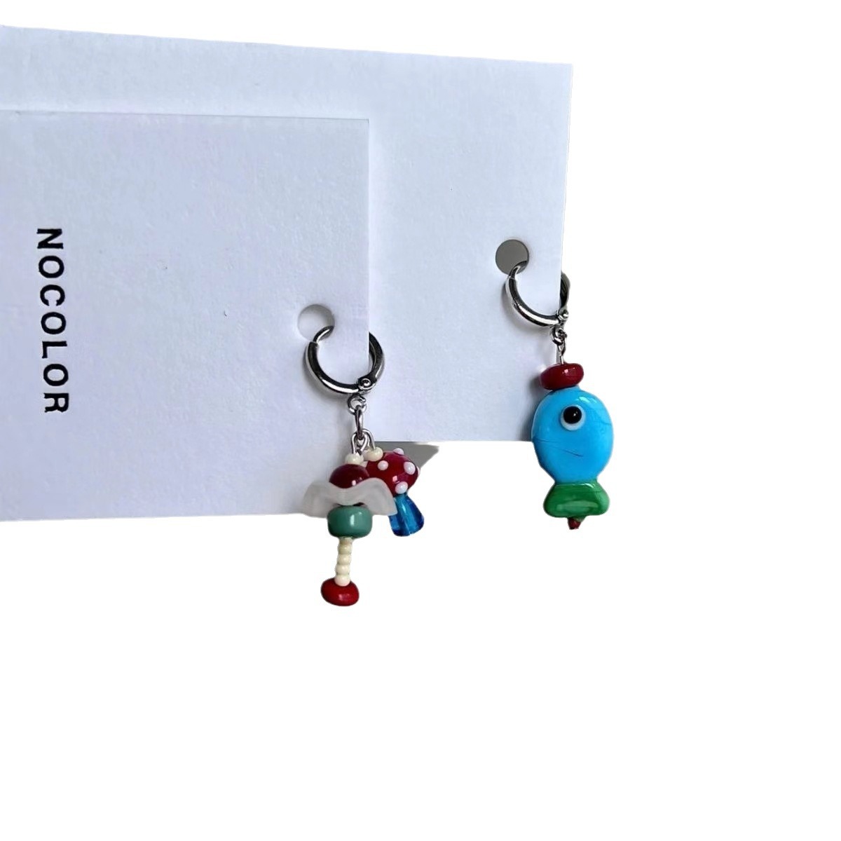 原创手作耳环撞色红蓝港风复古耳钉可爱小鱼小清新耳饰无耳洞耳夹