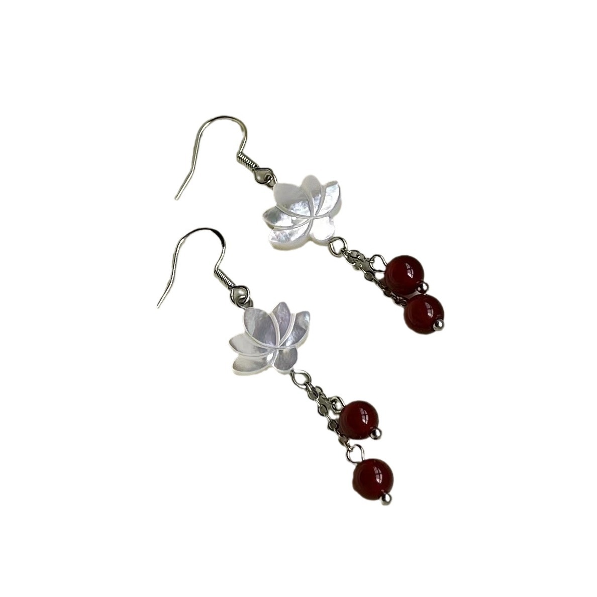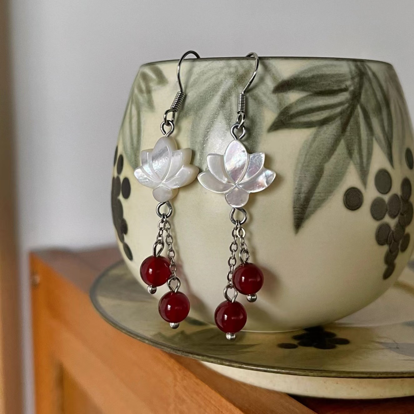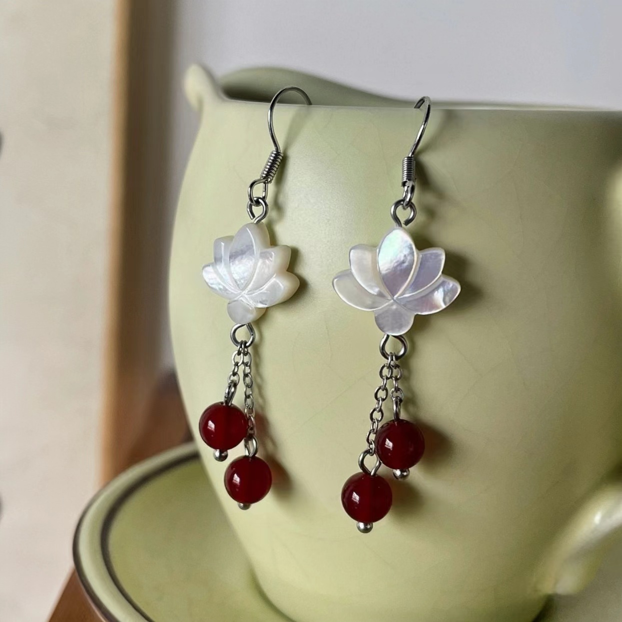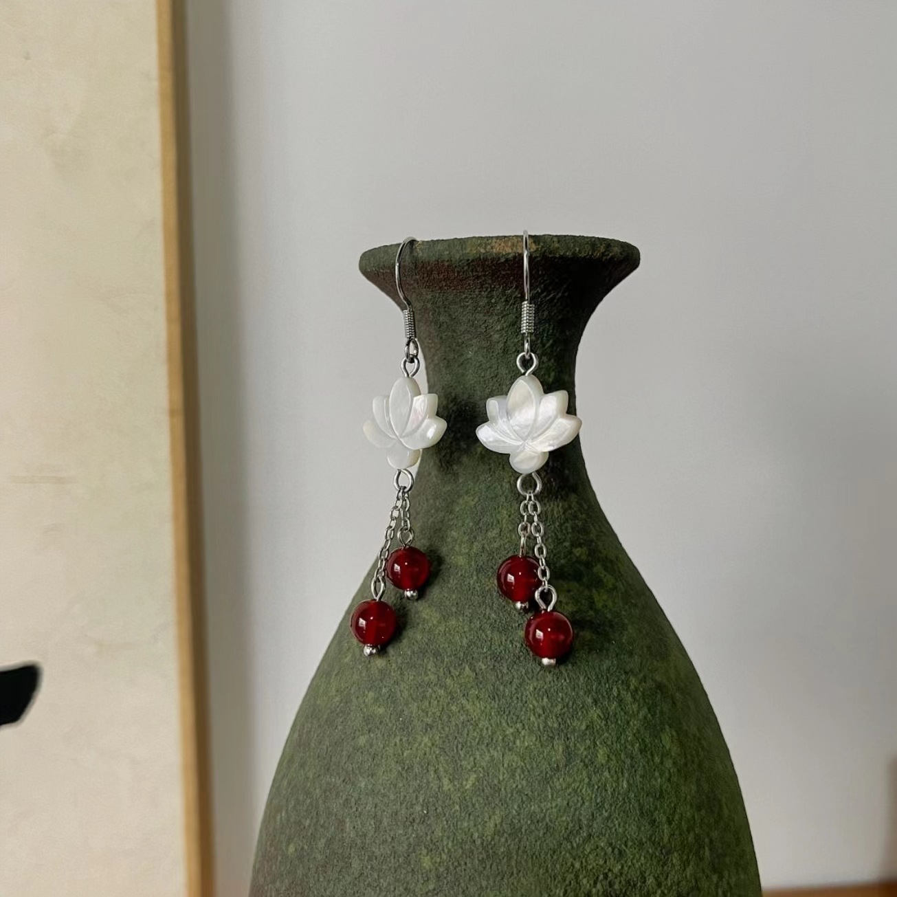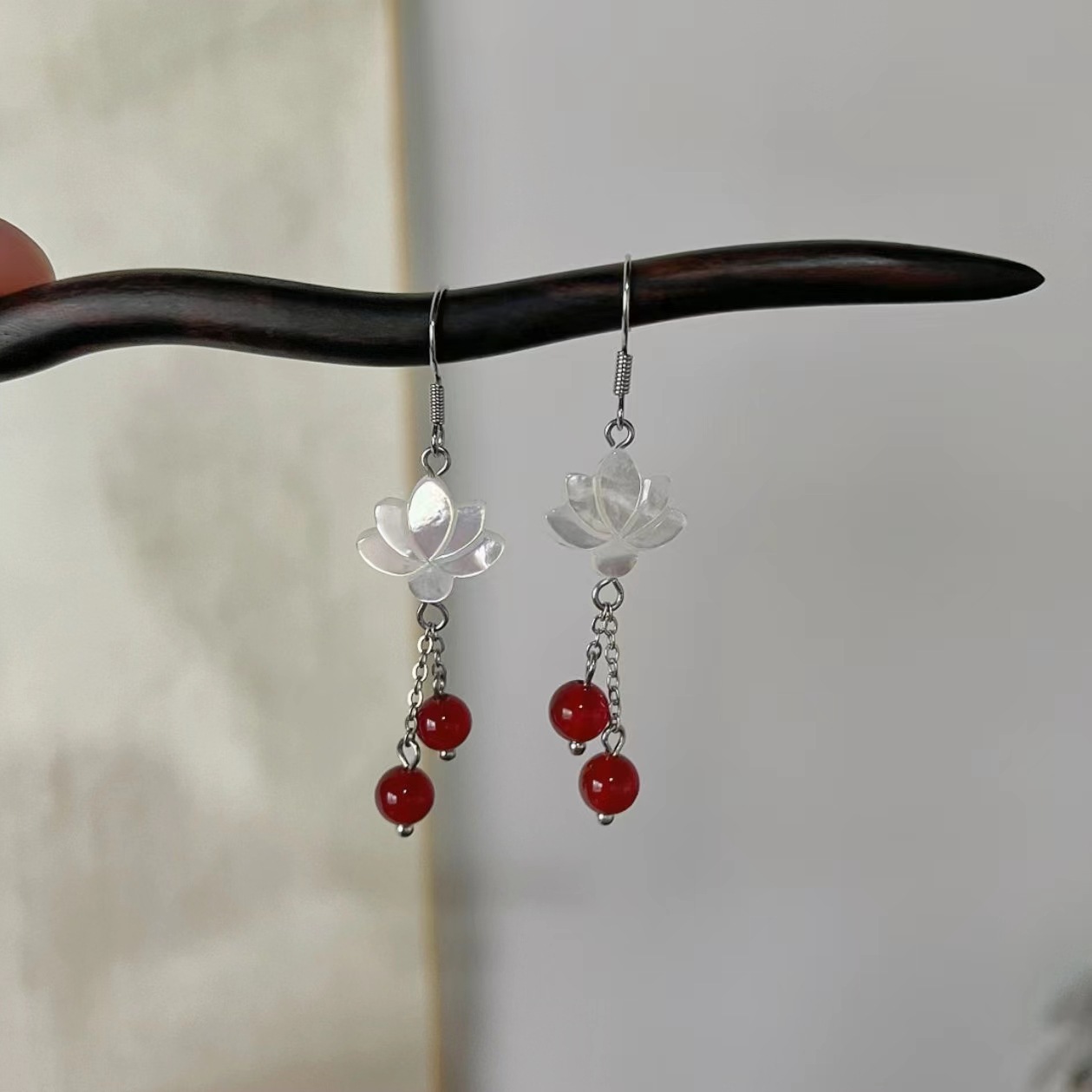 莲花耳环流苏禅意中式古典风格复古国风古风旗袍汉服幻彩贝壳花朵