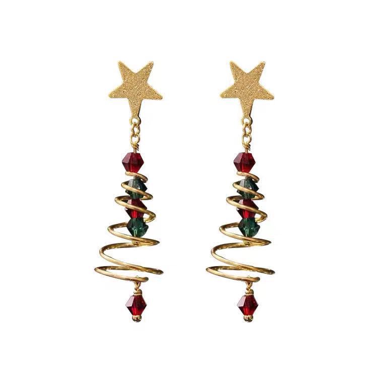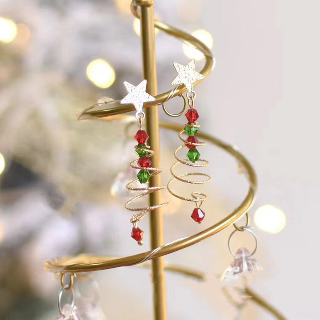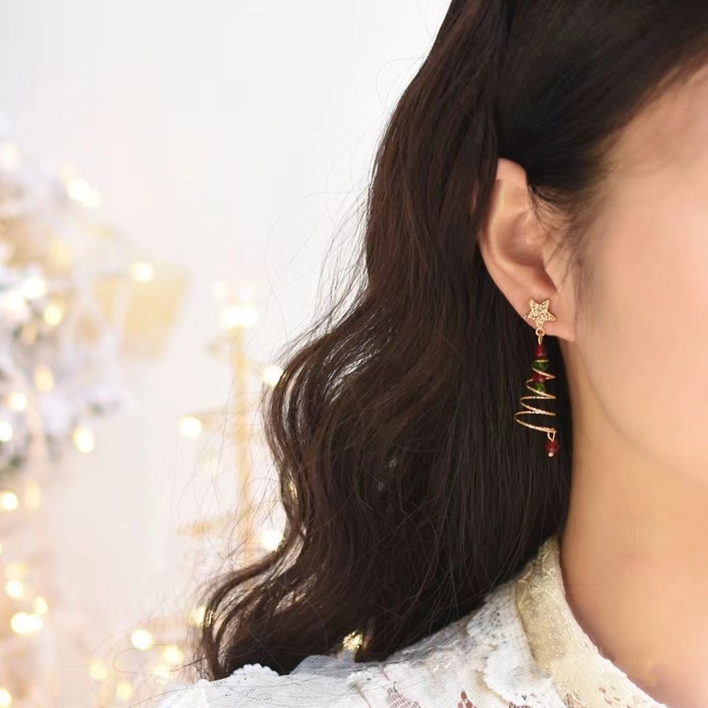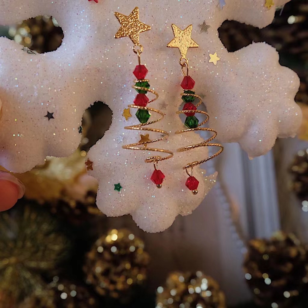 圣诞快乐」趣味手作节日耳饰显白红绿撞色树复古耳环无耳洞耳夹女