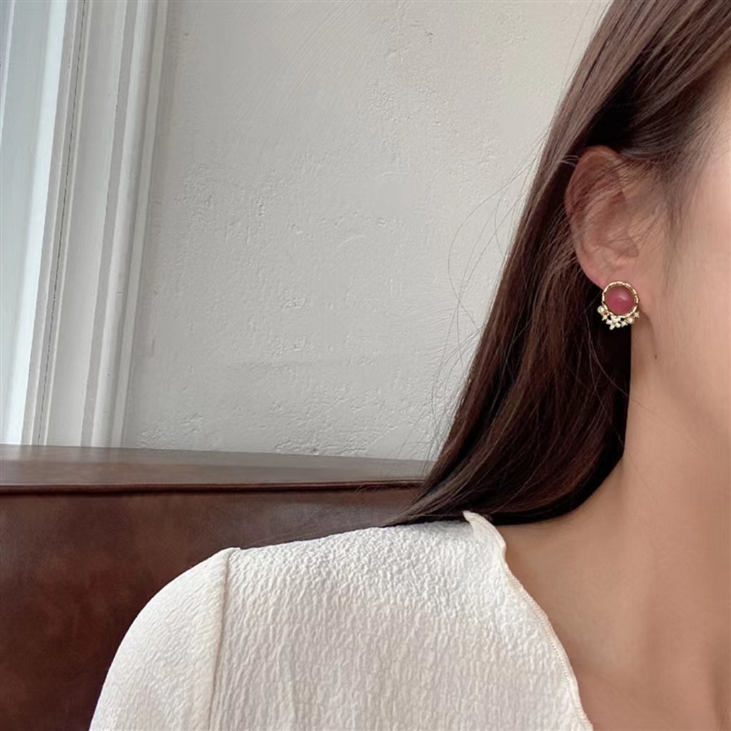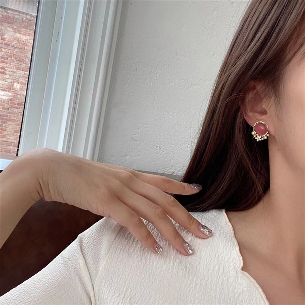 粉色 猫眼耳环女韩国网红气质小耳钉新款潮耳饰耳坠925银针