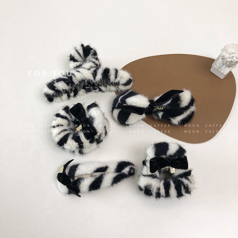 斑马纹毛毛抓夹ins超火的发饰品潮个性百搭发卡发夹秋冬新款