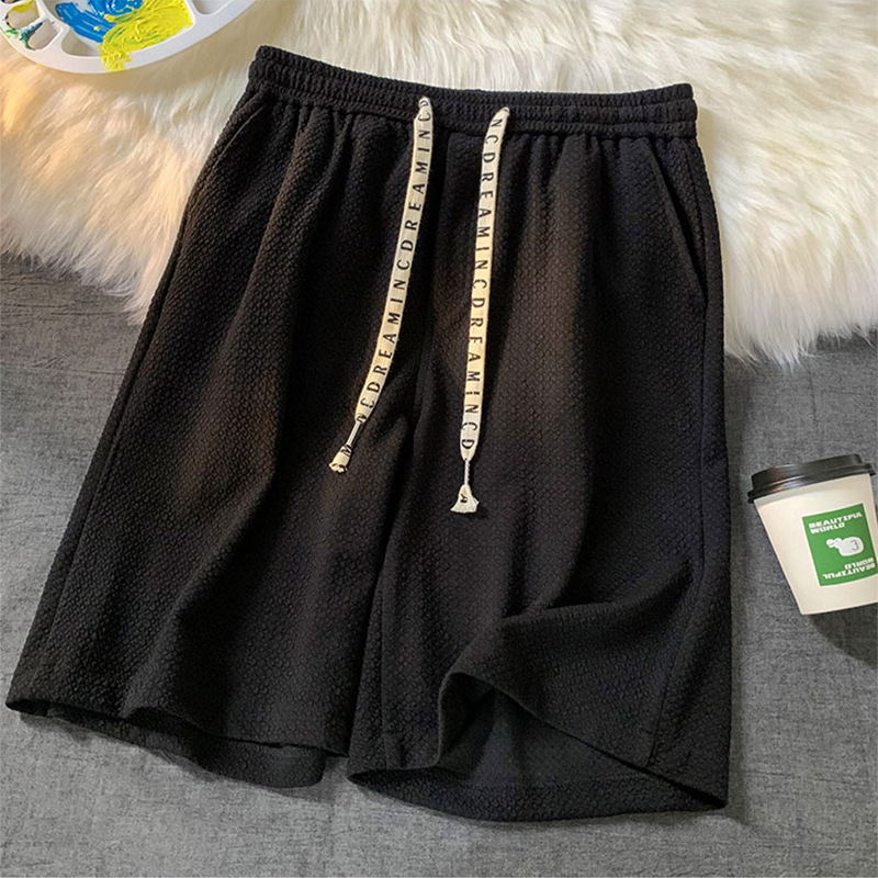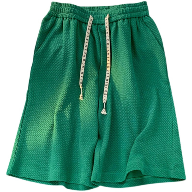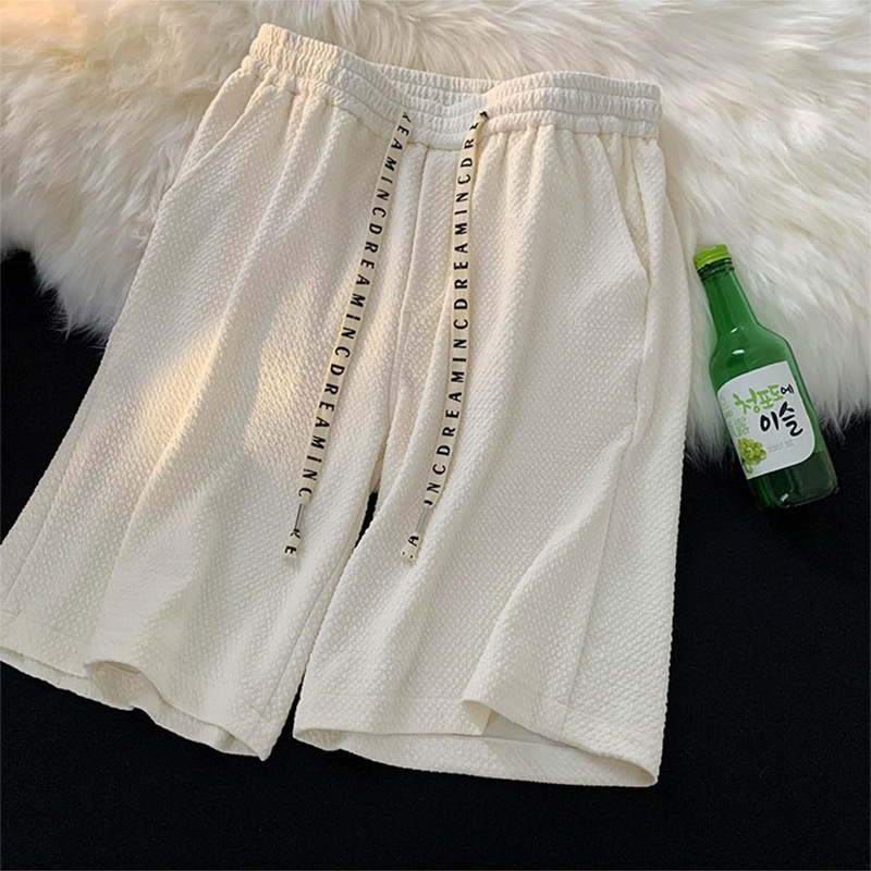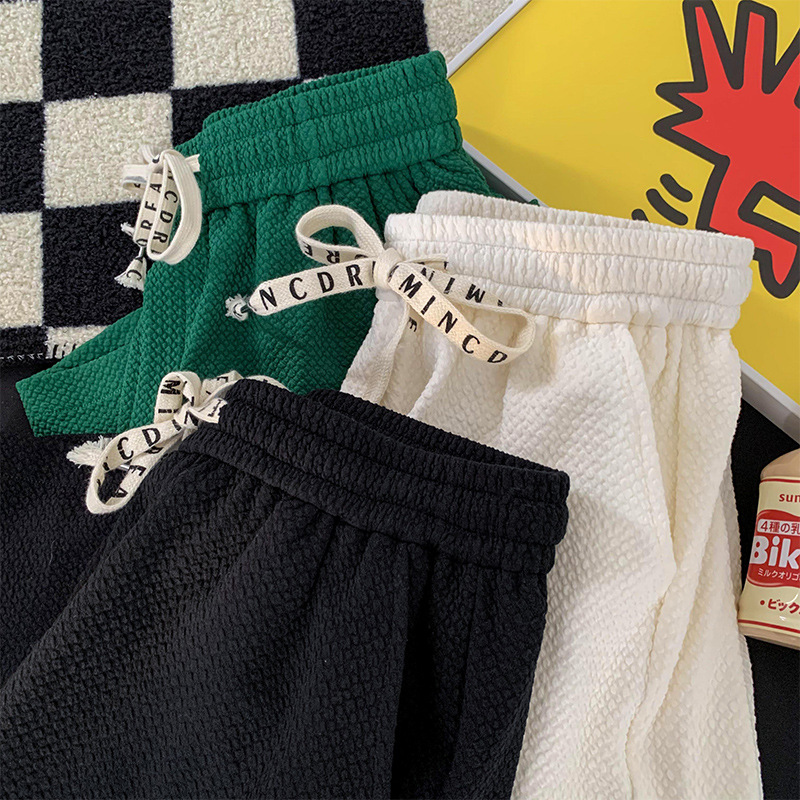 华夫格短裤女潮牌ins宽松直筒情侣五分裤网红夏季高级感运动裤子