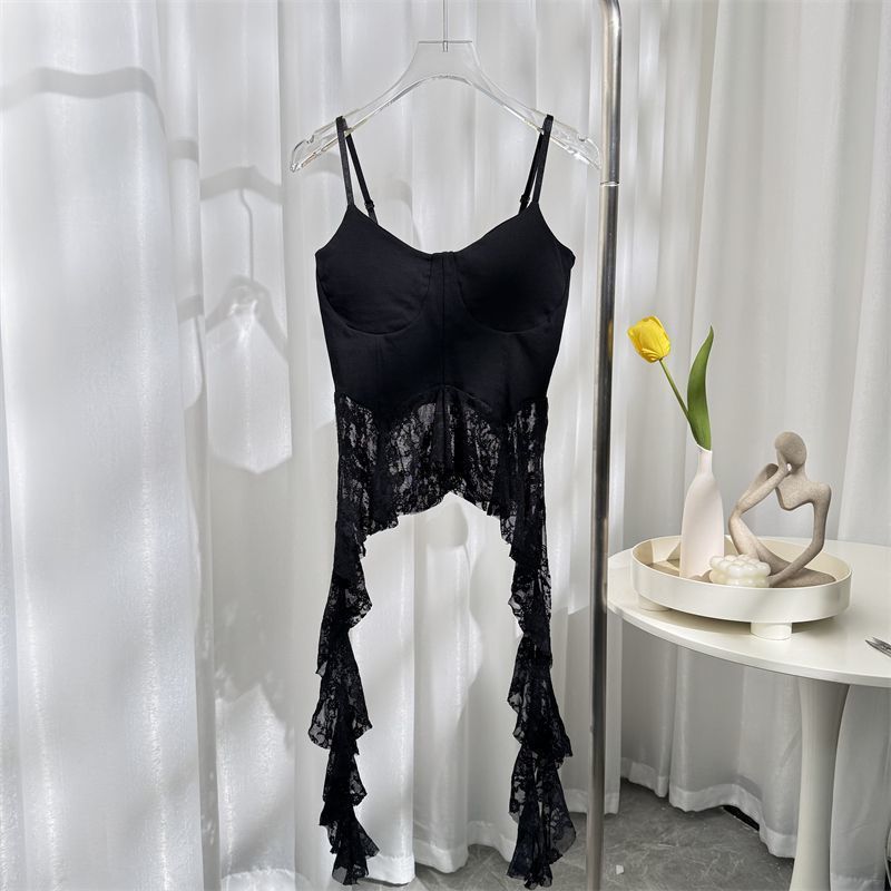【月销10万】2025夏纯欲不规则蕾丝荷叶边吊带背心女外穿美背上衣