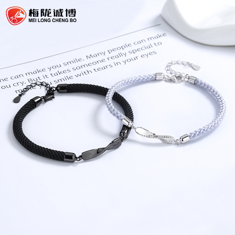莫比乌斯情侣手链男女生一对925纯银小众编织手绳情人节礼物饰品