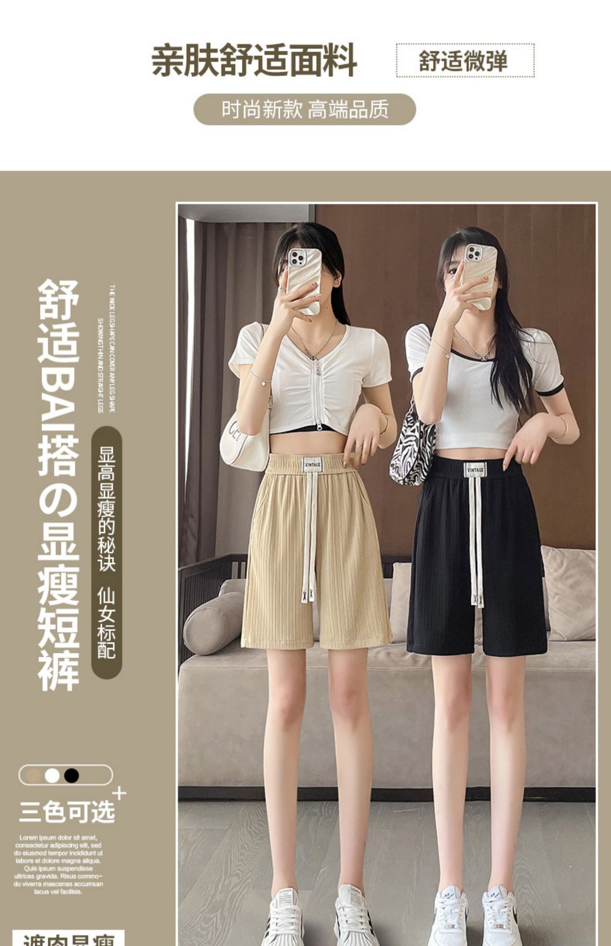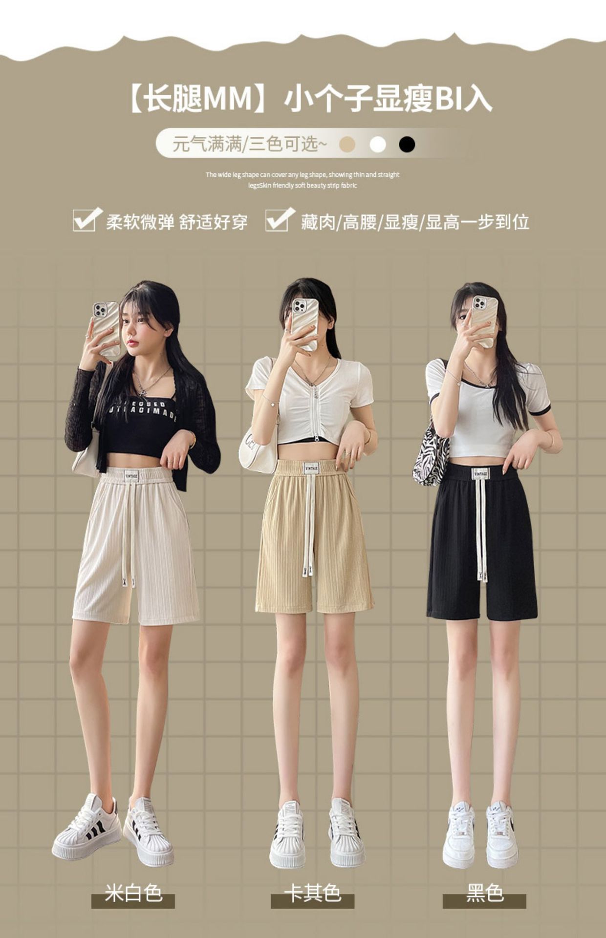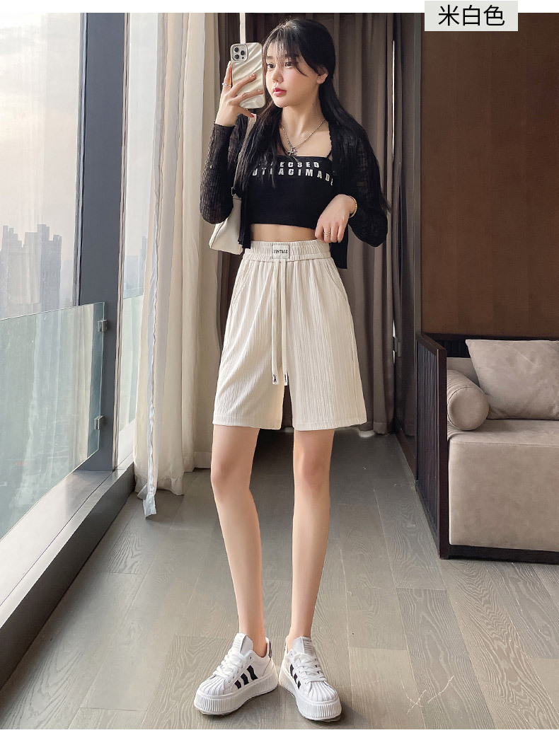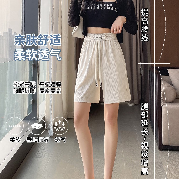 冰丝薄款五分裤女夏季新款阔腿中裤子宽松外穿直筒休闲运动短裤潮