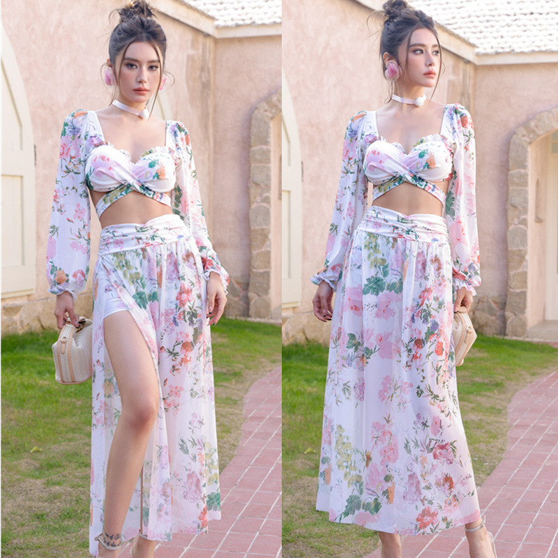 【花仙子】新款仙气游泳衣女比基尼bikini长袖高级感温泉泳装