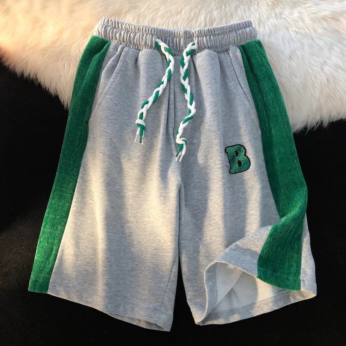 亚马逊速卖通跨境货源潮牌拼接短裤女夏宽松休闲五分裤百搭直筒裤