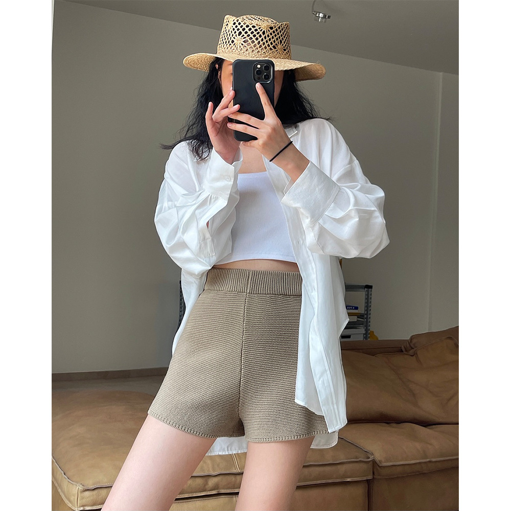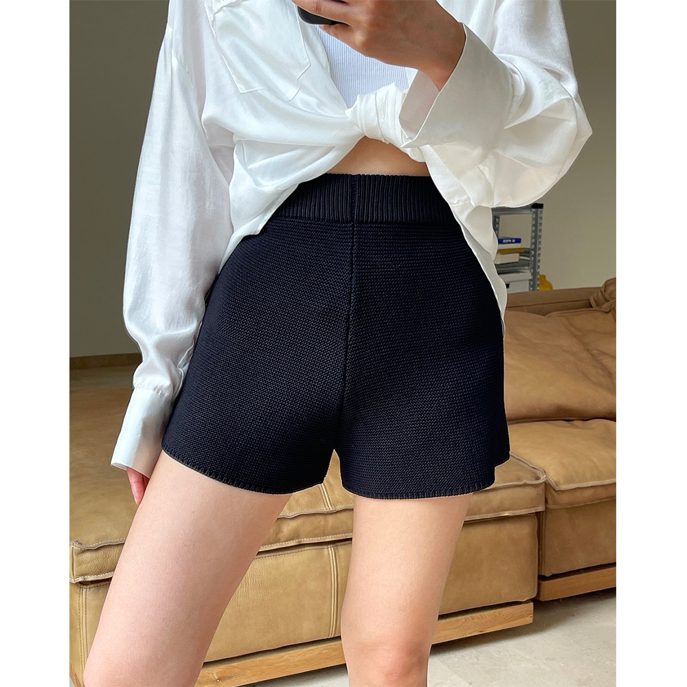 夏季新款韩版文艺仿亚麻针织短裤高腰显瘦宽松廓形透气休闲裤女潮
