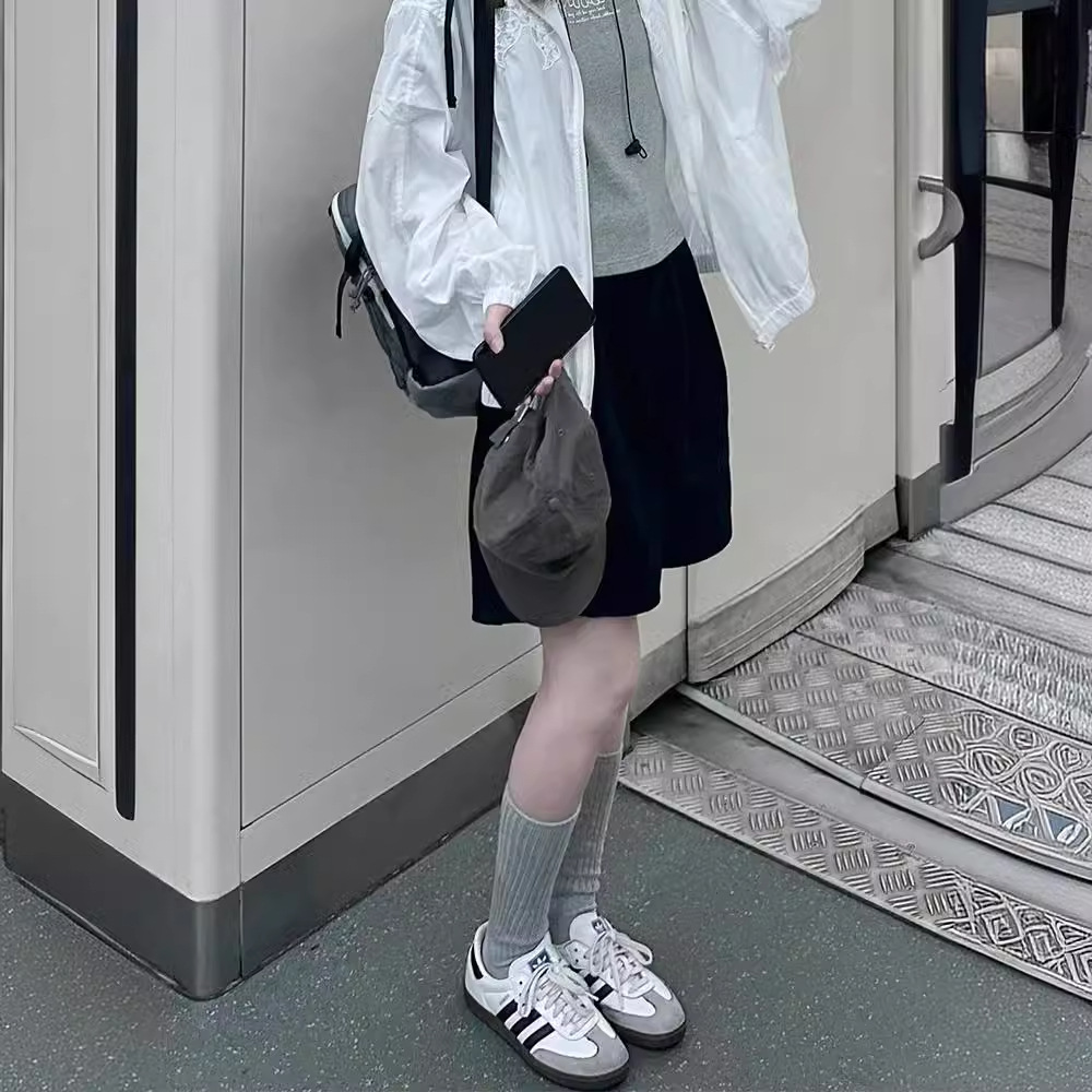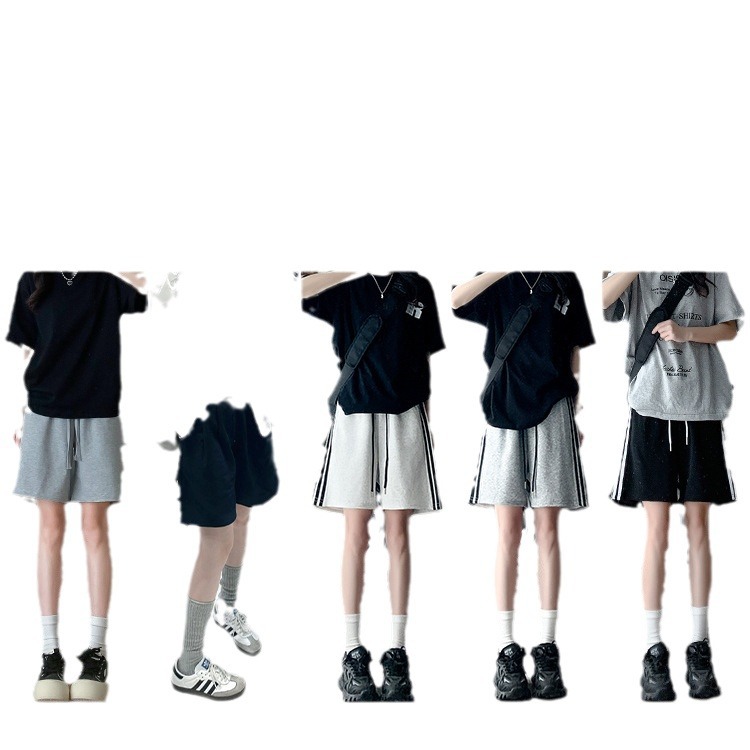 运动短裤女2025新夏季宽松直筒休闲潮港味阔腿中裤百搭黑色五分裤