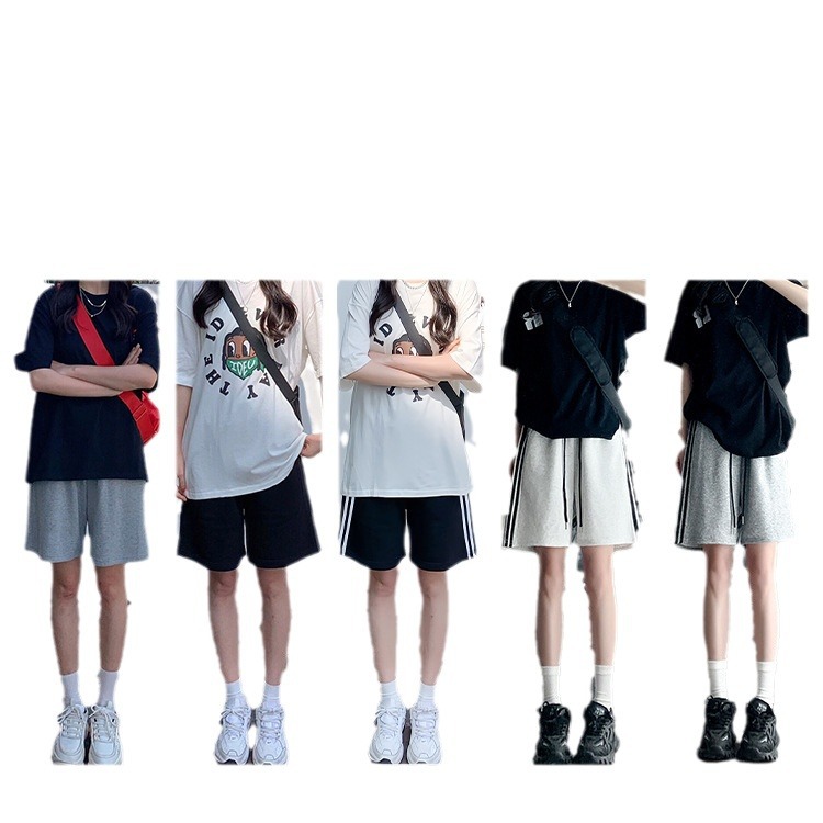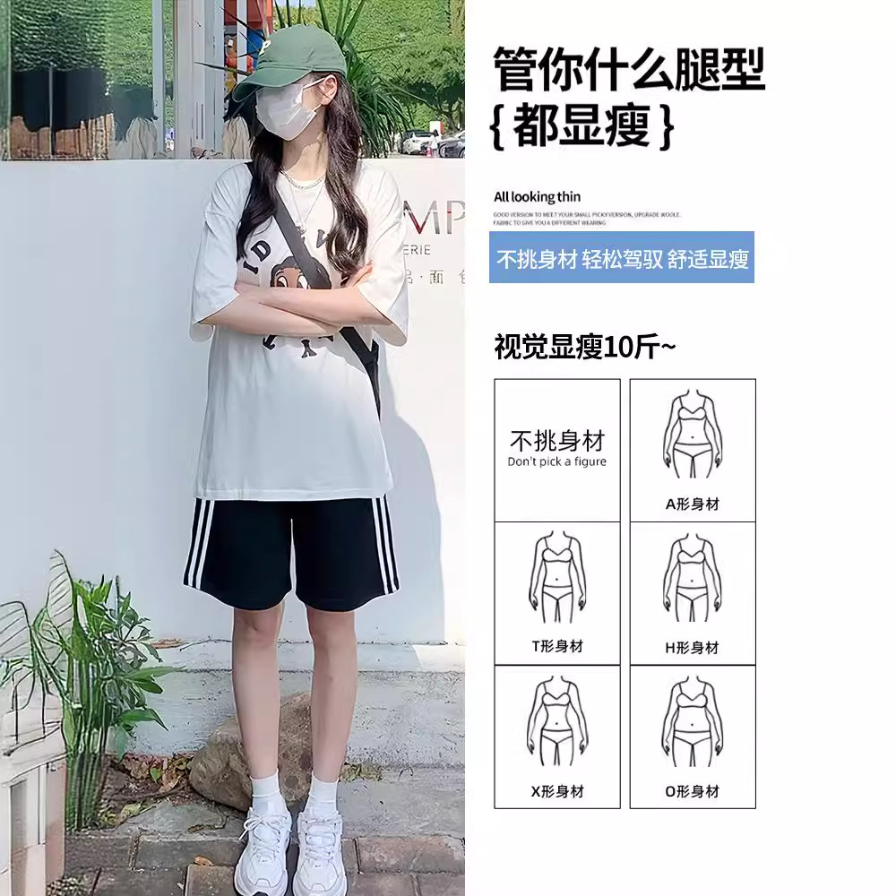 运动短裤女夏季薄款宽松显瘦高腰直筒外穿跑步休闲阔腿五分裤
