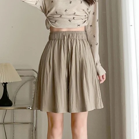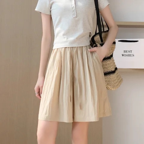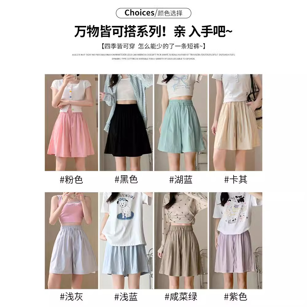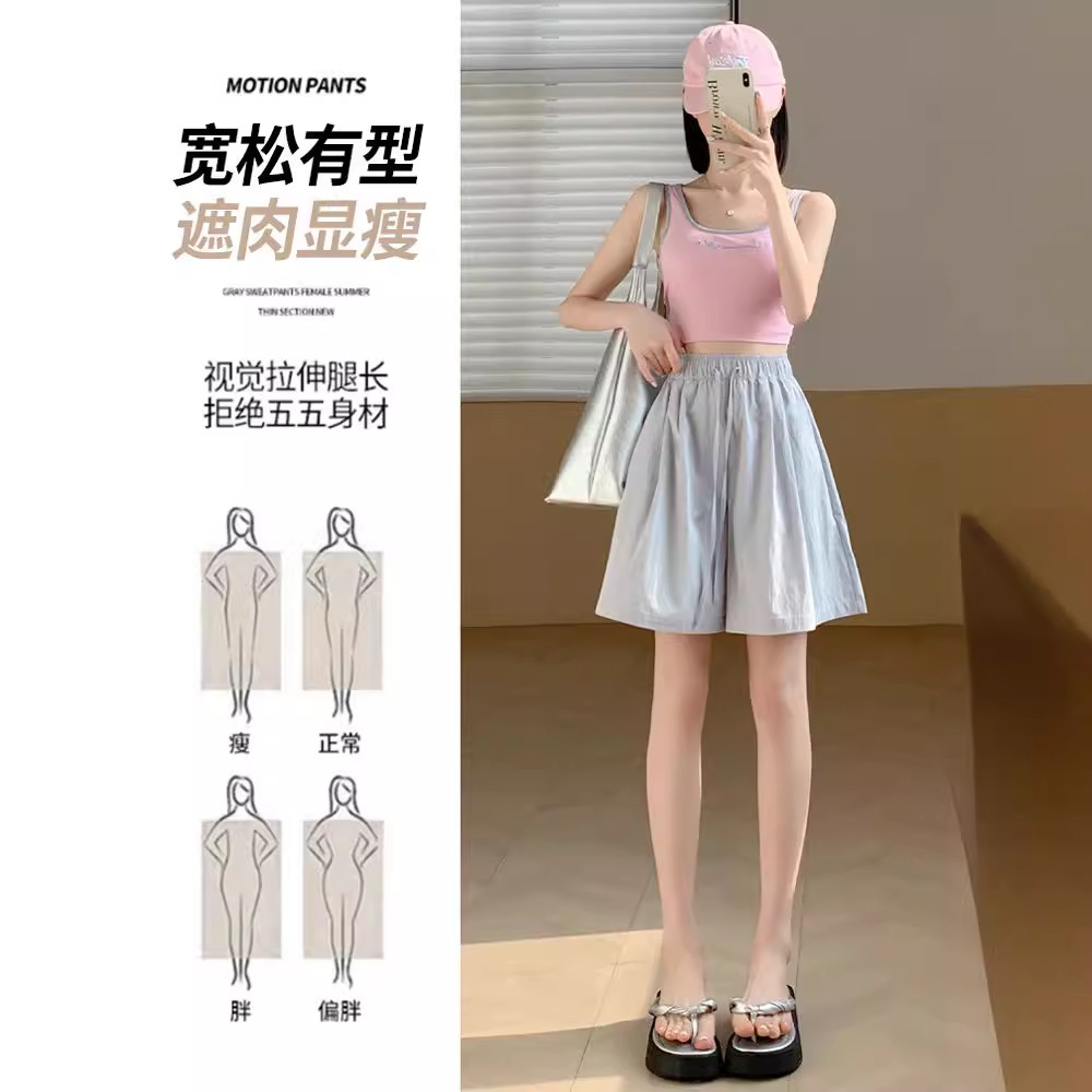 灰色山本短裤女夏季薄2025新款高腰阔腿外穿小个子休闲冰丝五分裤