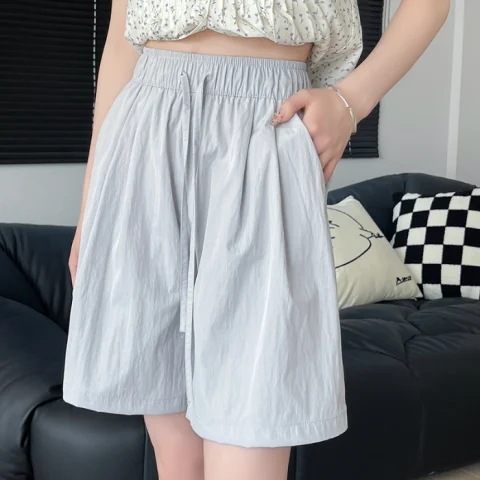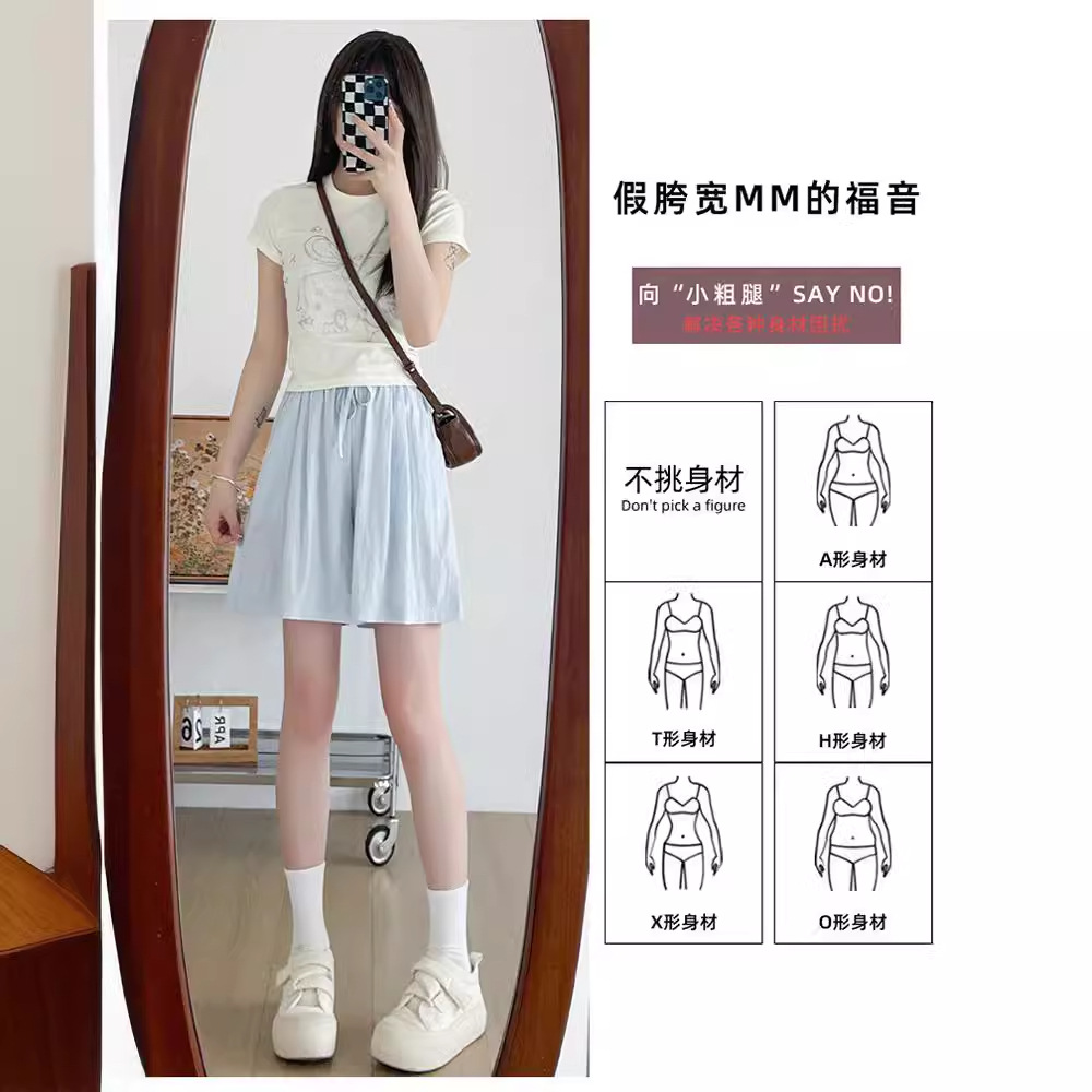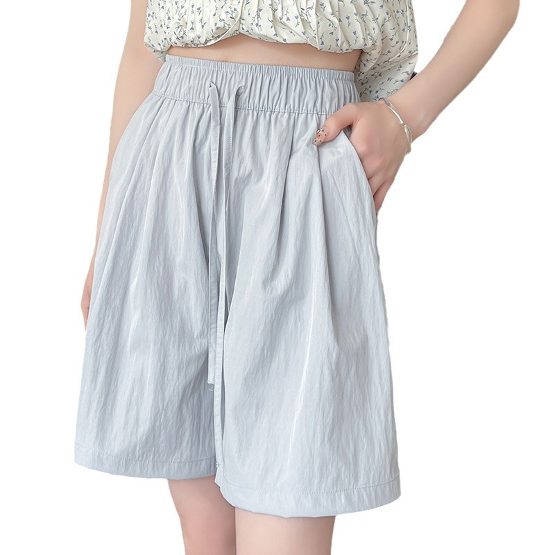 蓝色冰丝山本短裤女夏薄新款高腰外穿休闲阔腿中裤运动五分裤