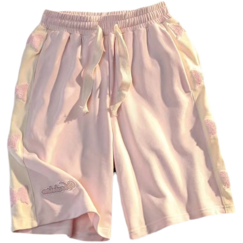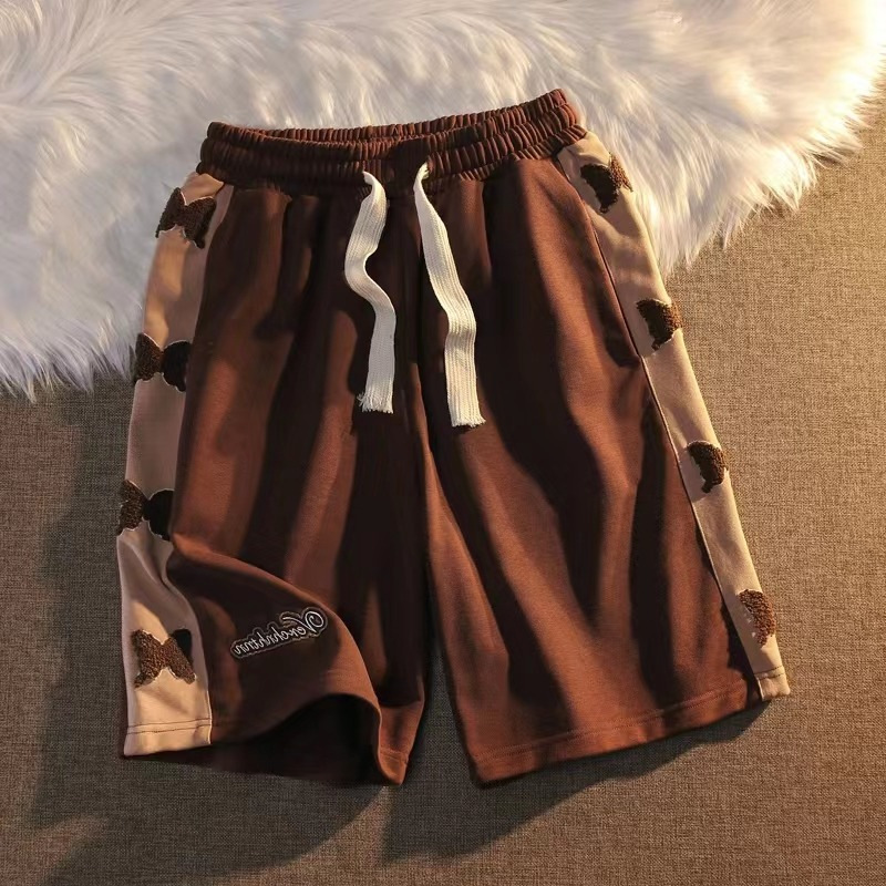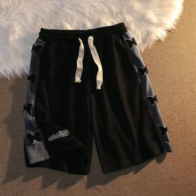跨境货源美式复古休闲运动短裤男女小众设计感直筒chic五分中裤子