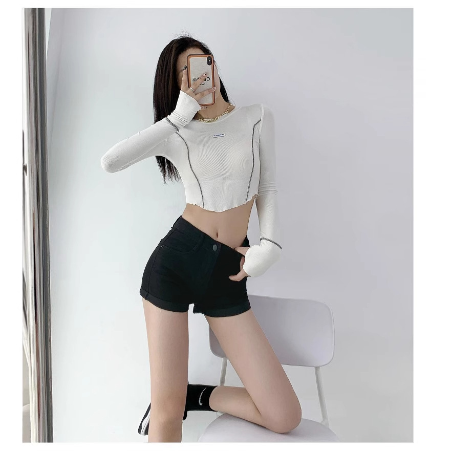 美式辣妹提臀修身牛仔短裤女夏天包臀高腰直筒弹力卷边热裤ins潮