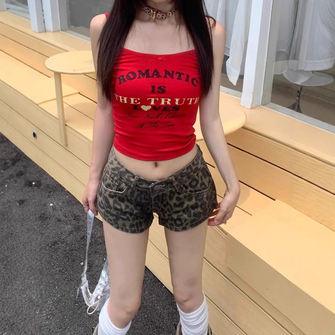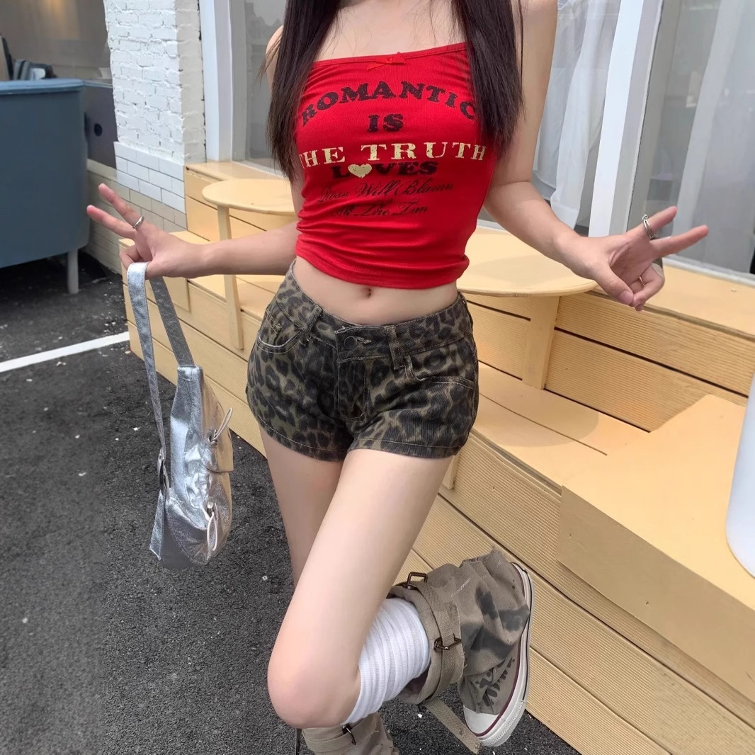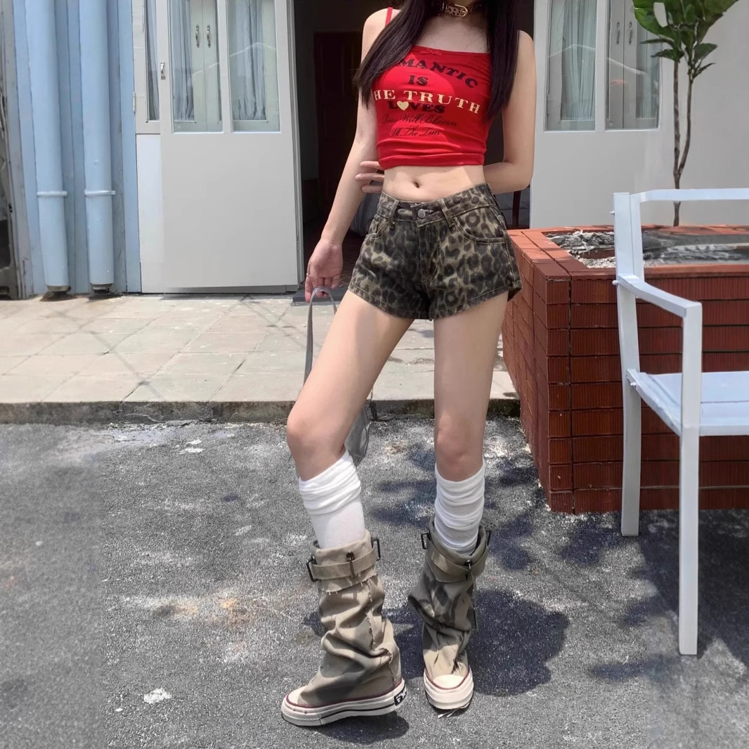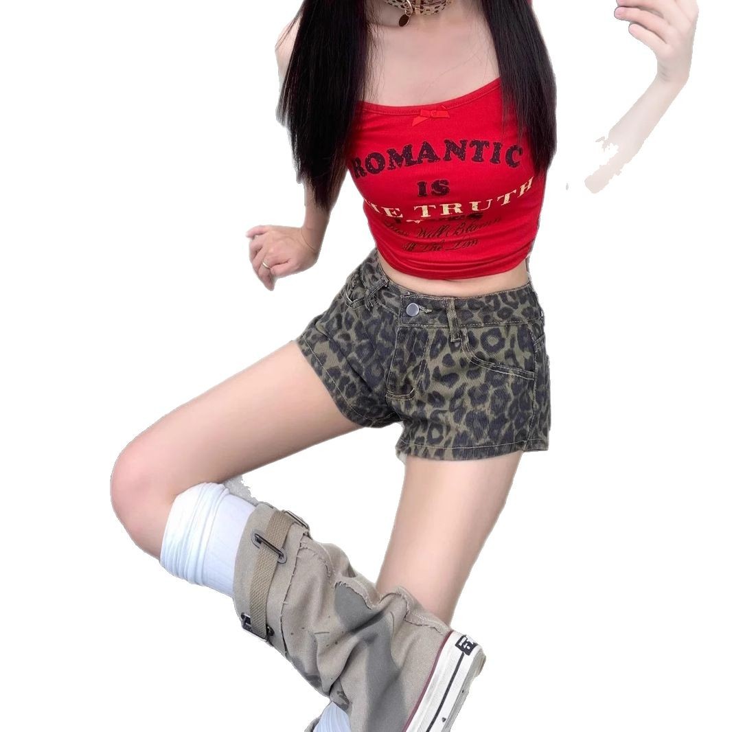 美式纯欲辣妹豹纹裤女2025夏季时尚低腰千禧休闲百搭牛仔短裤潮