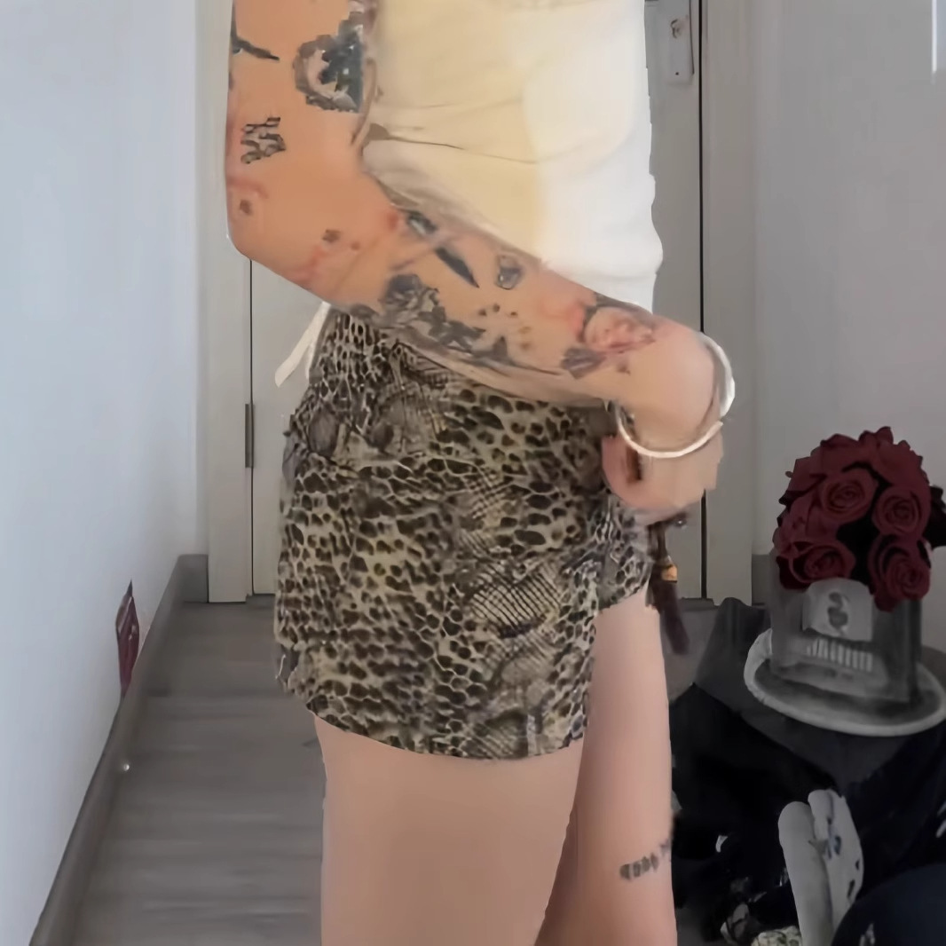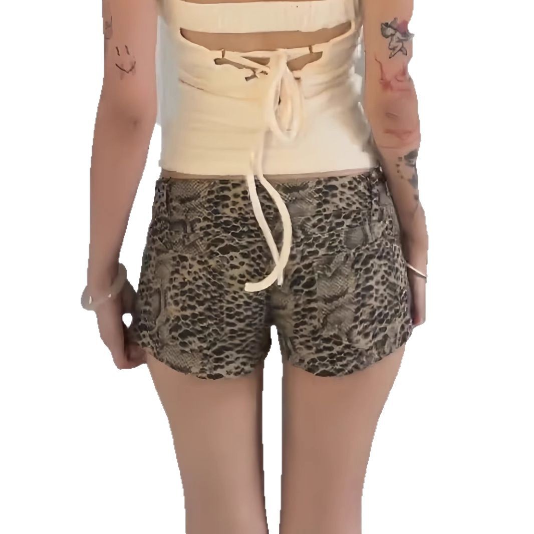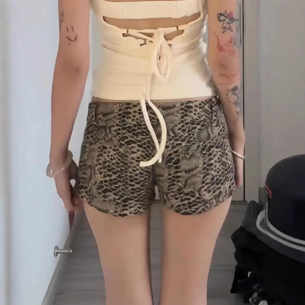 美式vibe豹纹绑带牛仔短裤女夏季新款辣妹修身显瘦a字阔腿热裤子