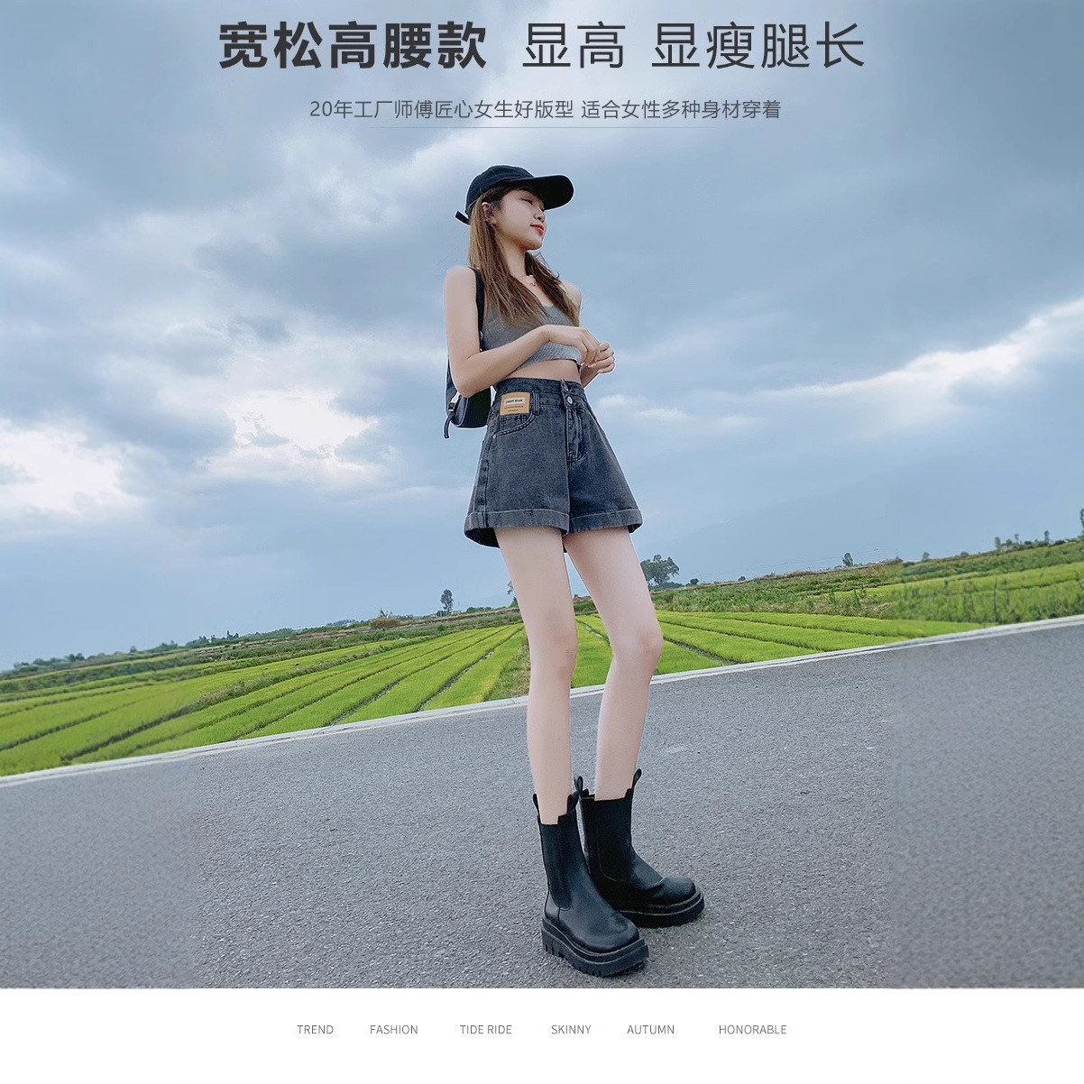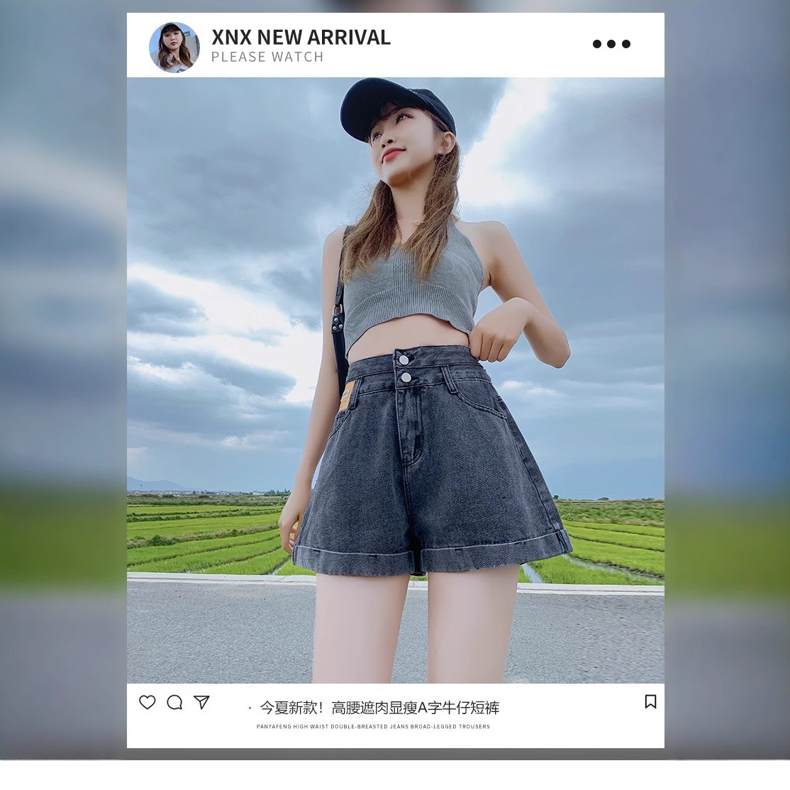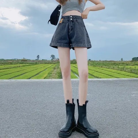 黑灰牛仔短裤女高腰阔腿显瘦网红a字夏季薄款2025年新款超短热裤