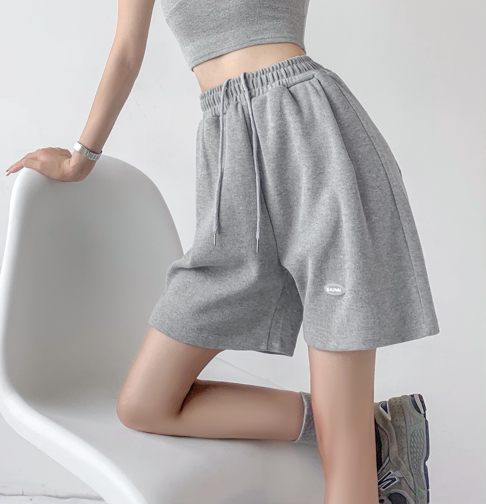 ins潮宽松直筒中裤运动华夫格短裤女夏辣妹高腰休闲阔腿五分裤