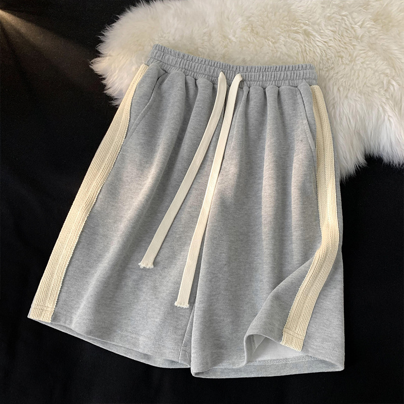 高腰运动短裤女夏季潮ins设计感女小众春秋款拼接五分裤薄款宽松