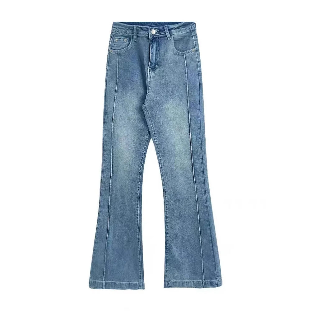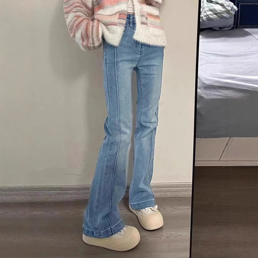 梨形身材微喇牛仔裤女大码胖妹妹复古高腰弹力显瘦喇叭马蹄长裤子