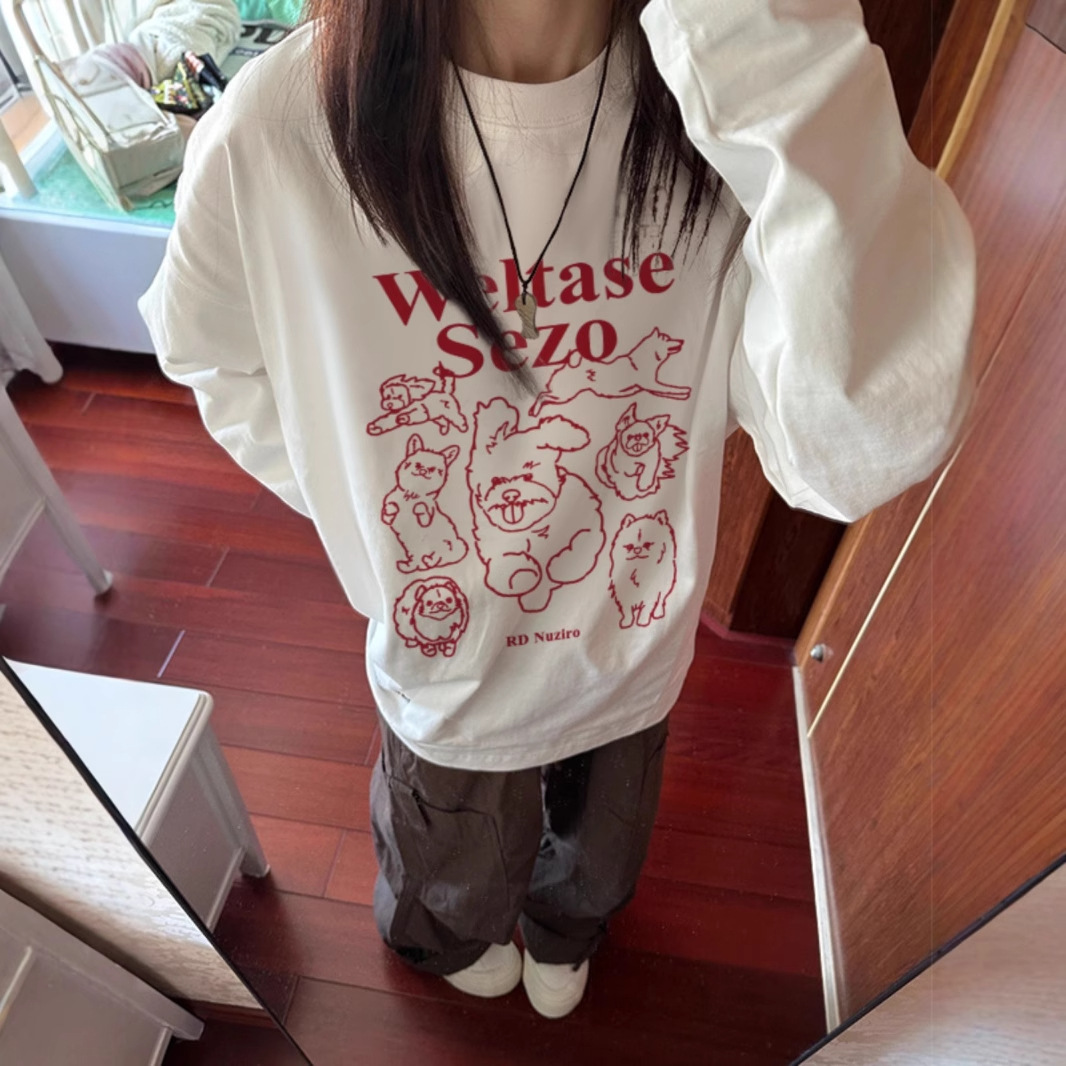 早秋chic长袖t恤卫衣女白色初秋美式春秋单穿宽松内搭打底衫上衣