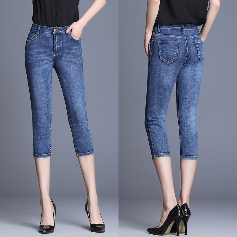 新款七分牛仔裤女夏季薄款高腰韩版分弹力修身显瘦中裤马裤