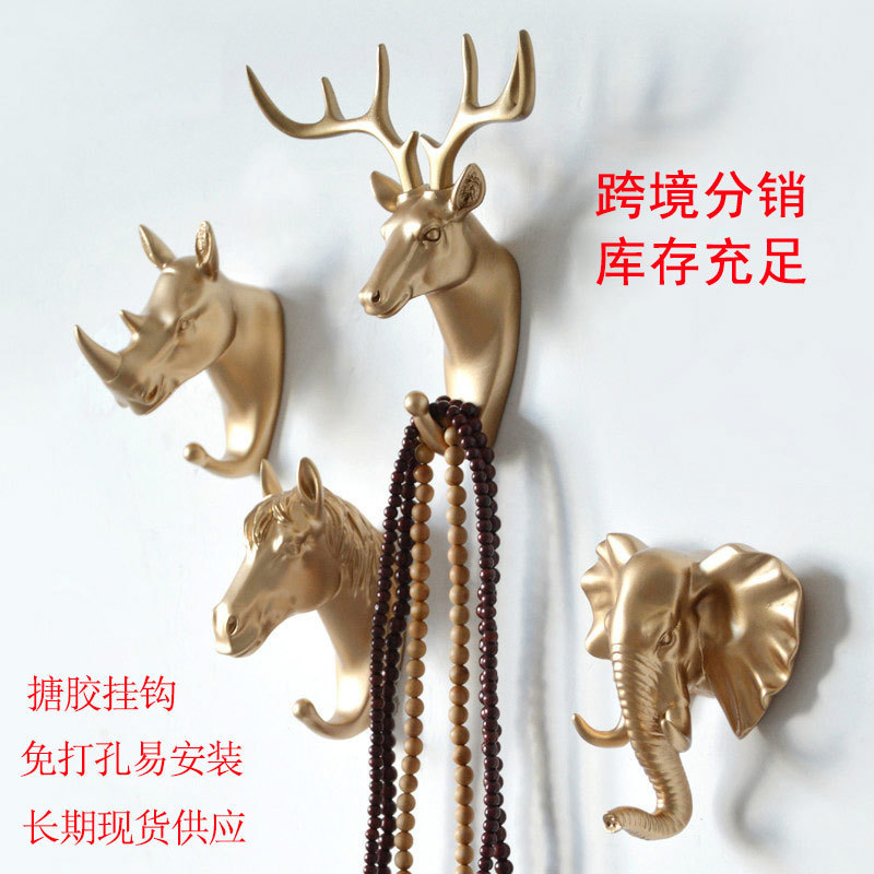 新品创意挂衣钩免打孔挂钩粘钩装饰美式创意动物头壁挂鹿头挂钩
